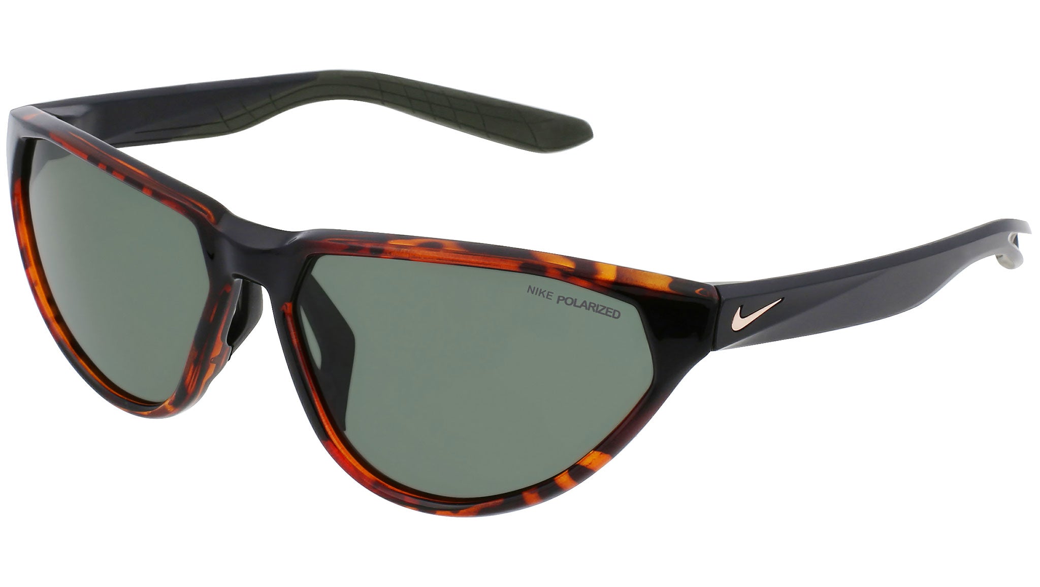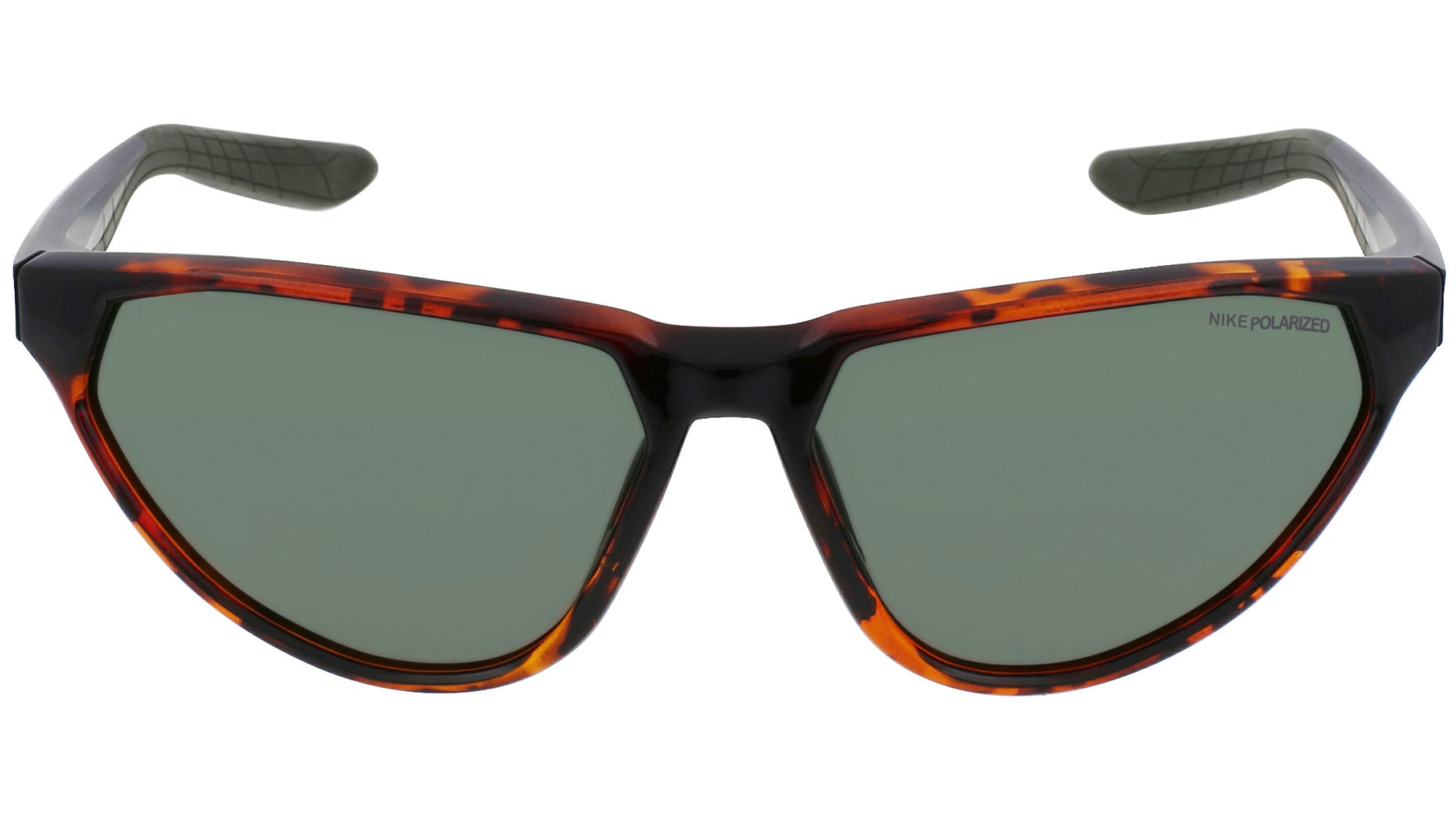 Nike Maverick Fierce P line sunglasses model DM0080-221 featuring shiny tortoise frame and green polar lens.