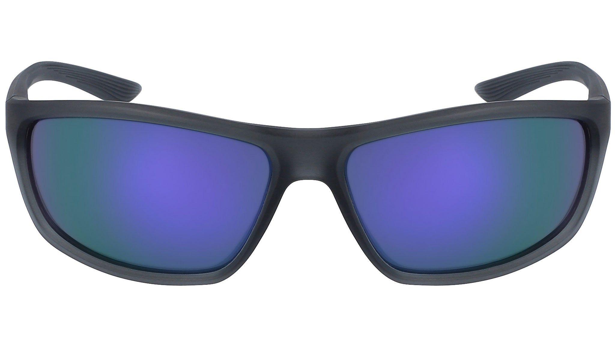 Nike Rabid M line sunglasses model EV1110-015 featuring matte crystal dark grey frame and grey with violet mirror lens.