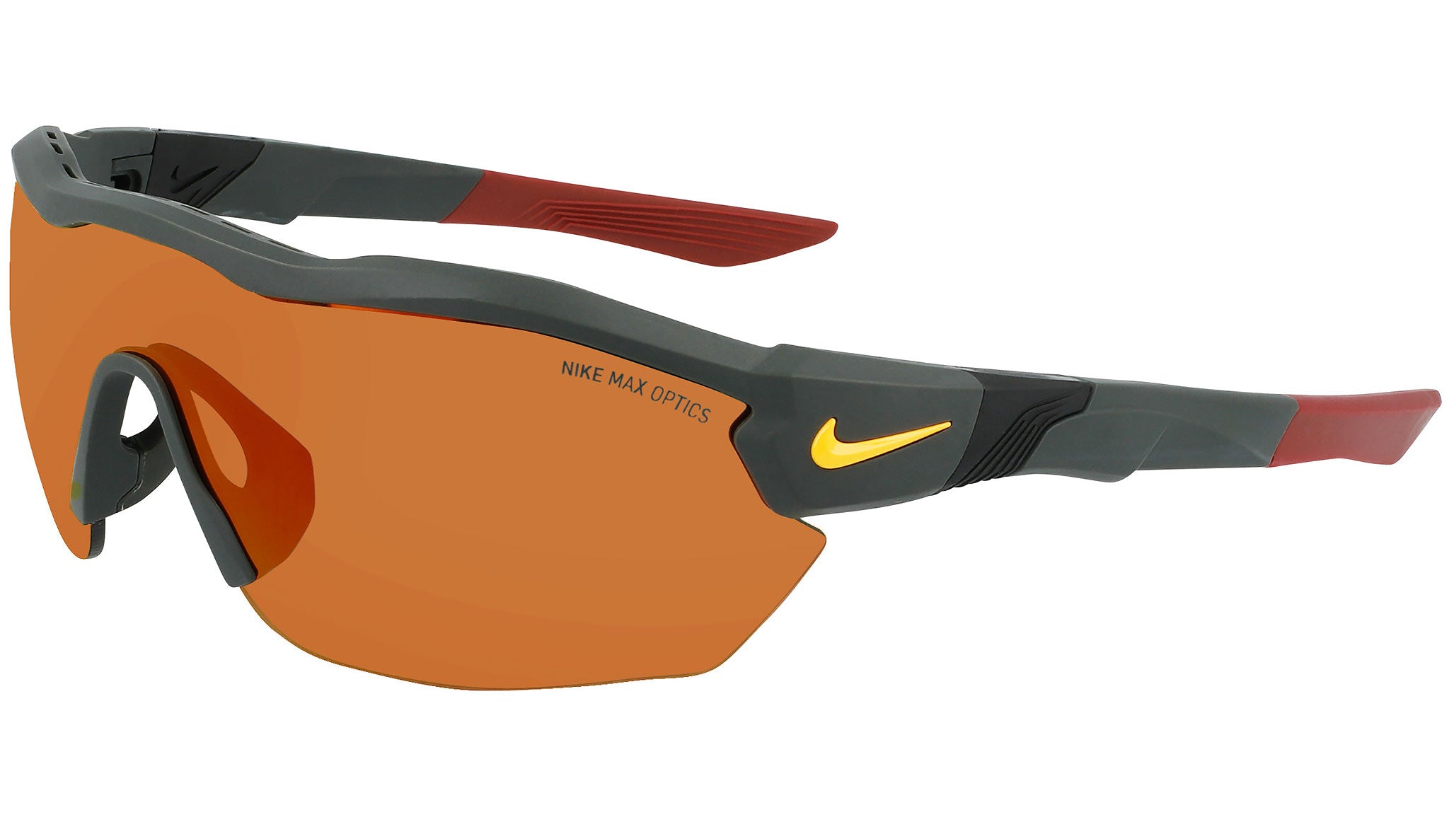 The pinnacle of comfort and clarity: designed using pro-athlete insights, the Nike Show X3 Elite sunglasses offer optimum eyewear performance with a one-piece lens for uninterrupted line of sight, anti-fogging ventilation, and lightweight, ergonomic comfort. Benefits: Nike Road Tint blocks harsh light on the track and road. Nike Elite one-piece lens for superior coverage and clarity. Max optics provide precise vision from all angles. Injected frame material is derived from at least 40% castor bean oil. Contoured lens provides deeper coverage. Anti-fog ventilation holes in the frame circulate air flow. Adjustable temple arms with rubber sleeves for enhanced grip and optimal fit. Floating nose pad helps optimize airflow and absorb impact.
