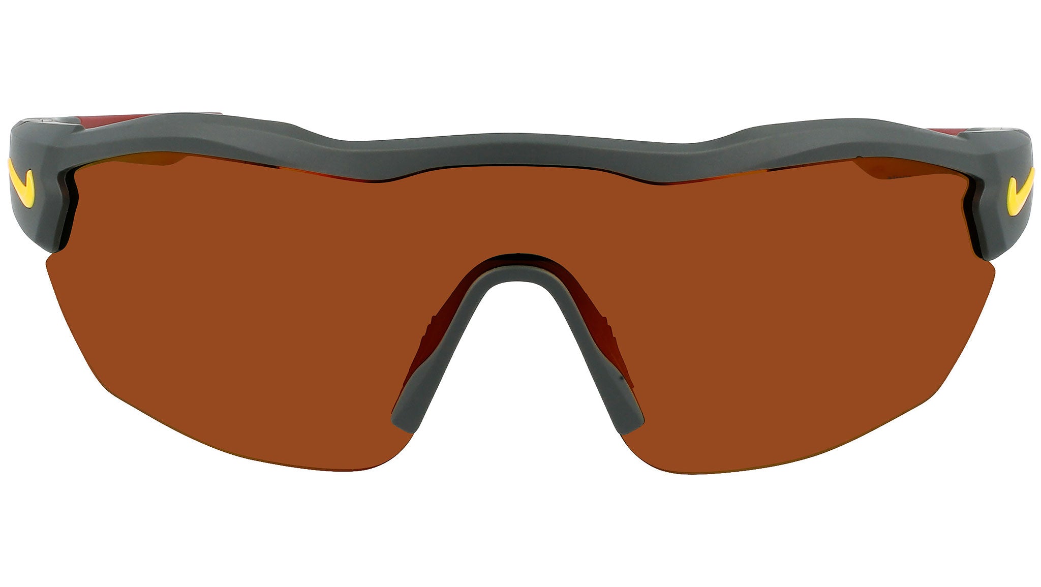 Nike Show X3 Elite M line sunglasses model DJ2027-355 featuring matte solid sequoia frame and grey fade orange lens.