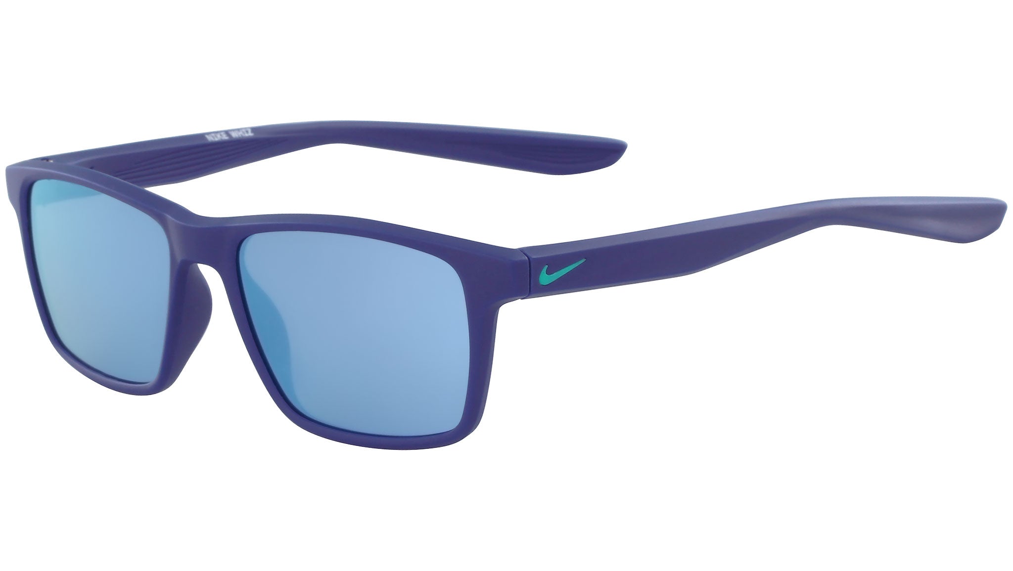 Nike Whiz line sunglasses model EV1160-434 featuring matte indigo force frame and grey with light blue mirror lens.