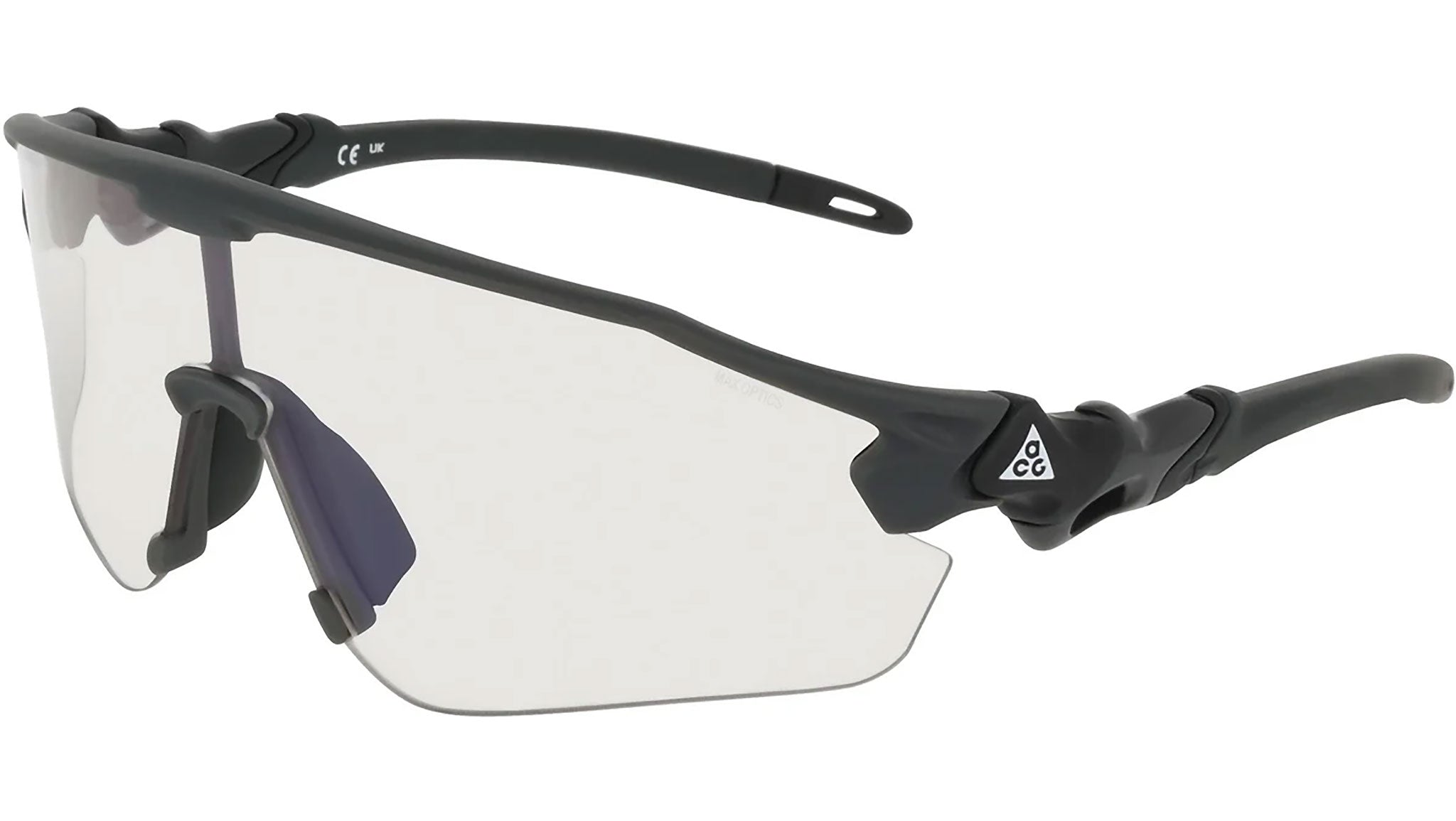 Pensati per ambienti e condizioni impegnative, i Nike ACG Peak E uniscono un design essenziale a una progettazione tecnica orientata alle prestazioni, con una struttura semi-rim leggera e una lente a mascherina con curvatura base 6 che offre copertura media e contribuisce a ridurre la luce laterale. Le lenti Terrain Tint sono studiate per aumentare il contrasto e migliorare la definizione sul terreno, mentre il sistema Nike Max Optics Pro aiuta a contenere i riflessi e a mantenere una visione più nitida grazie ai rivestimenti idro-oleofobici che respingono acqua e olio, ideali quando il meteo cambia rapidamente. Naselli e terminali asta regolabili in gomma TPE migliorano comfort e grip, con più punti di aggancio per la fascetta per una stabilità extra durante le attività più dinamiche. La montatura a iniezione utilizza materiale derivato da olio di semi di ricino (almeno 40%), per un equilibrio tra resistenza e attenzione ai materiali; completano il prodotto la protezione 100% UVA/UVB e la dotazione di sacchetto/pouch protettivo.