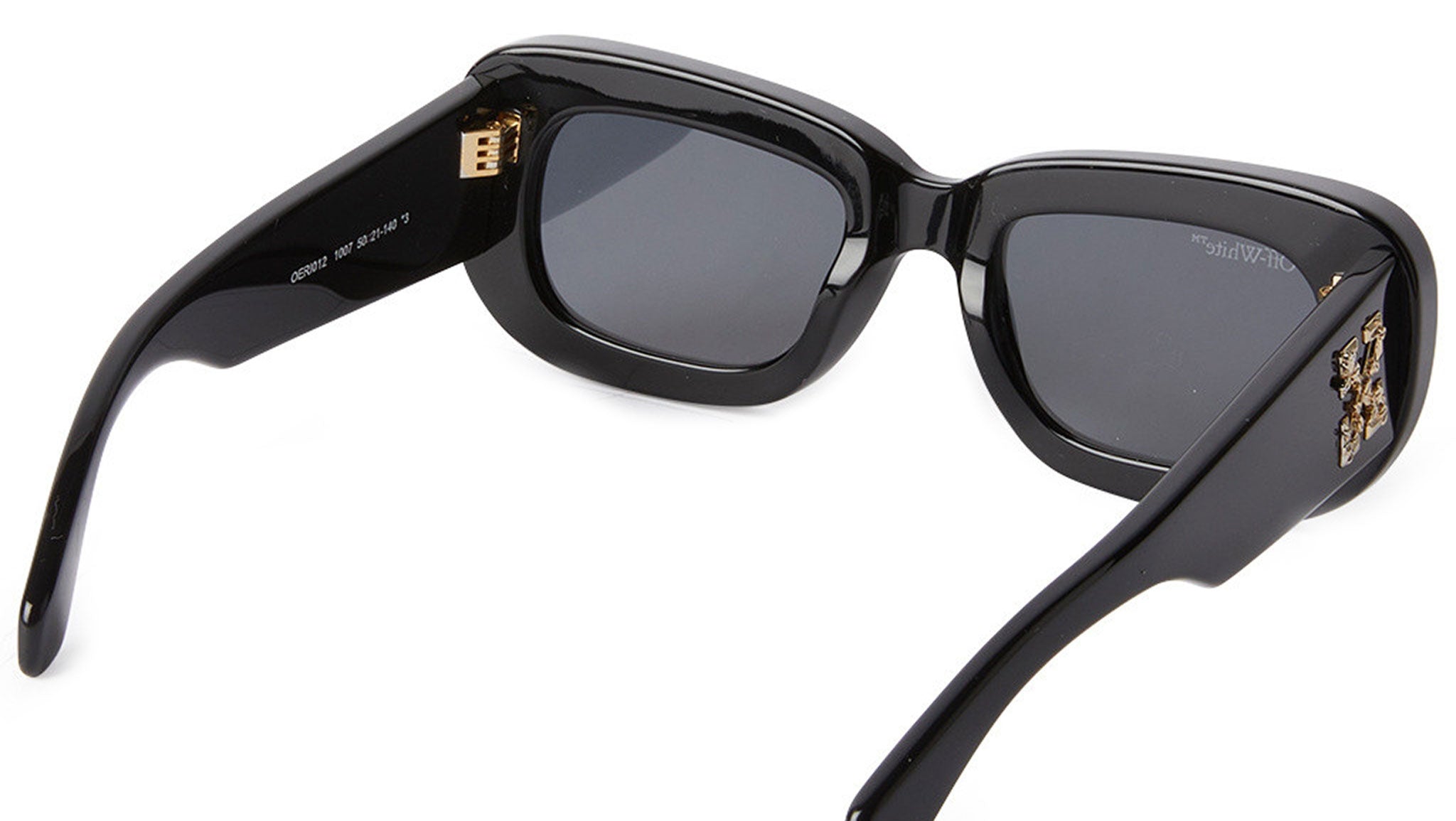 Pensati per le persone che amano uno stile deciso, gli occhiali da sole Carrara oversize presentano aste spesse, impreziosite da un motivo a forma di foglie di edera. La loro vibe è vintage, ma lo stile è decisamente Off-White™️. Forma tonda in metallo nero. Lenti grigio scuro. Frecce Off-White™ sulle aste. Naselli in gomma trasparenti.