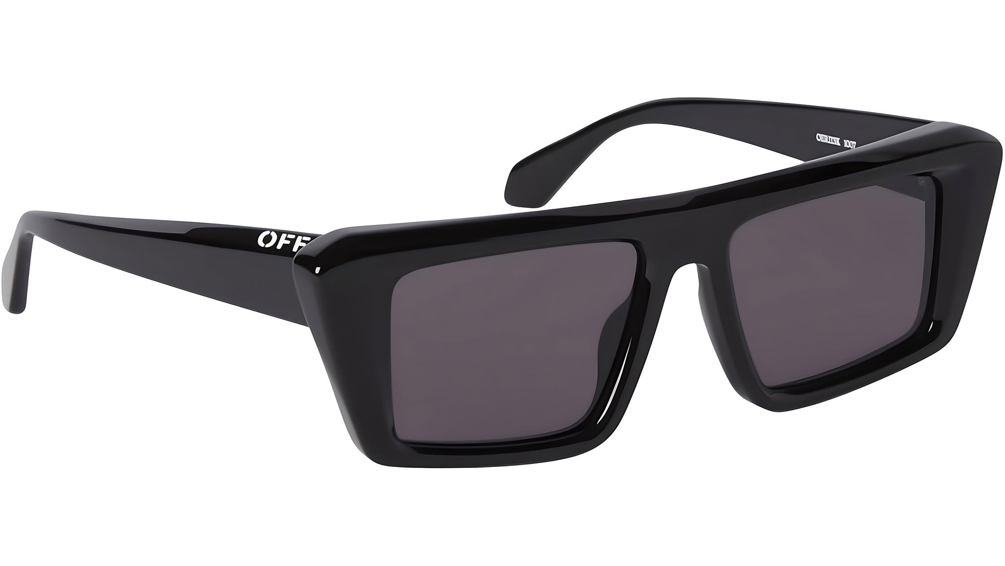 Occhiali da sole Off-White modello Hartford codice colore 1007 con frontale in acetato nero tinta unita e lenti cat. 3 in polimero CR-39 grigio scuro. Rivenditore autorizzato Off-White Eyewear online. Gli occhiali vengono consegnati con custodia e accessori originali e sono coperti dalla garanzia ufficiale di 12 mesi del produttore.