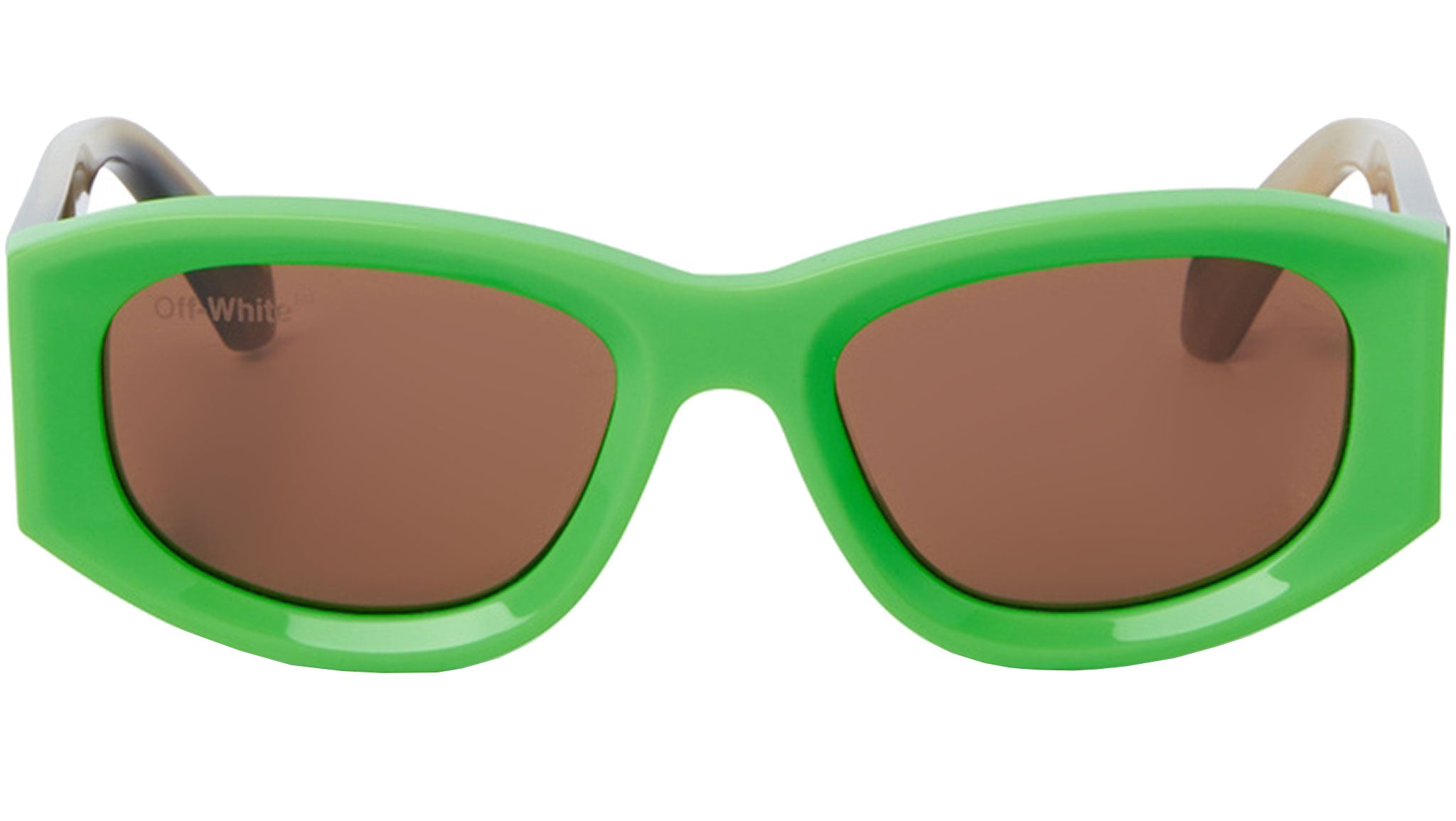 Gli occhiali da sole Joan si ispirano agli occhiali sportivi anni '90, rivisitati in chiave più audace e architettonica. La montatura in acetato si distingue per un gioco di volumi scultorei, per un effetto grafico 3D sul frontale. Oltre alle opzioni nero e havana, Joan è disponibile anche in due colori a contrasto: giallo pop e verde con aste havana striato.