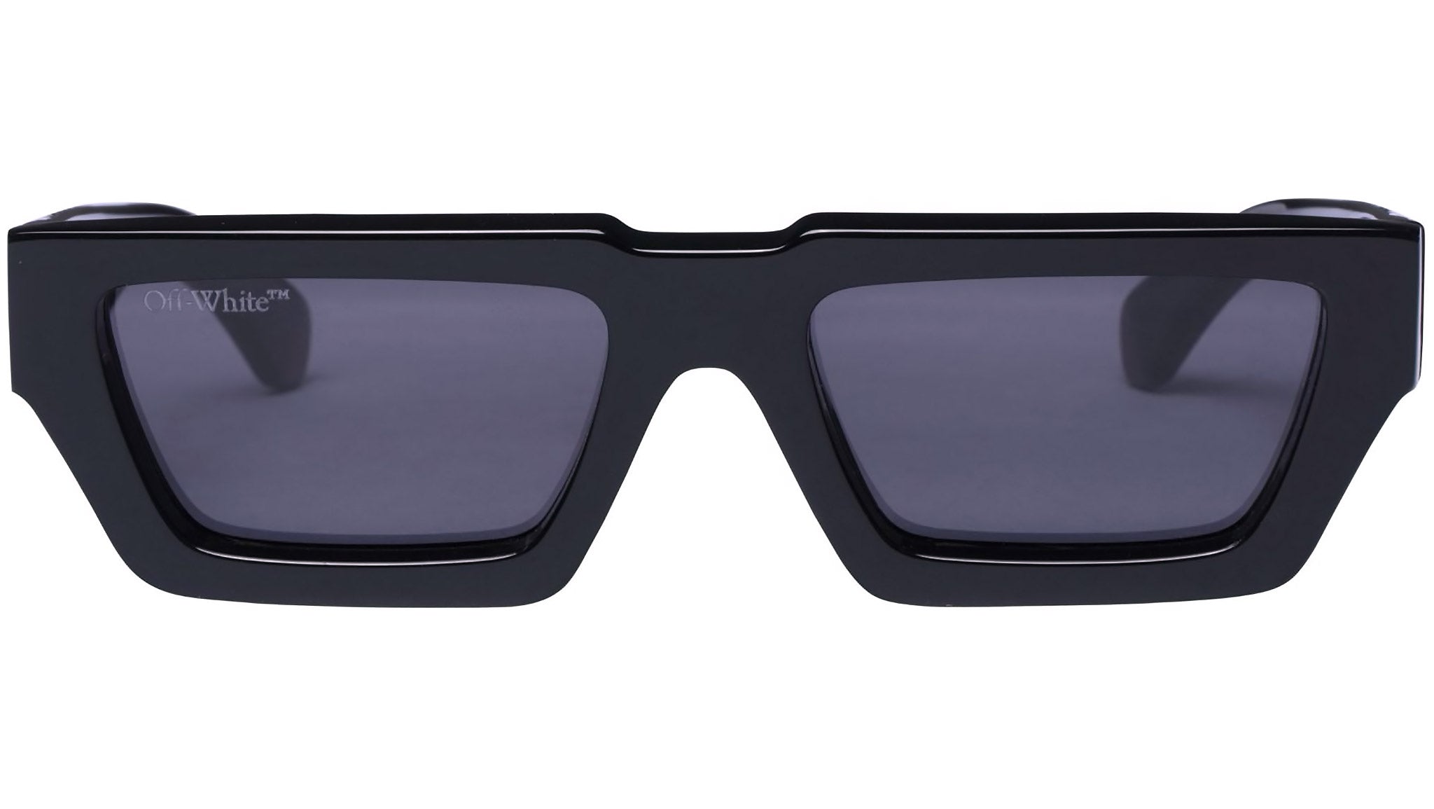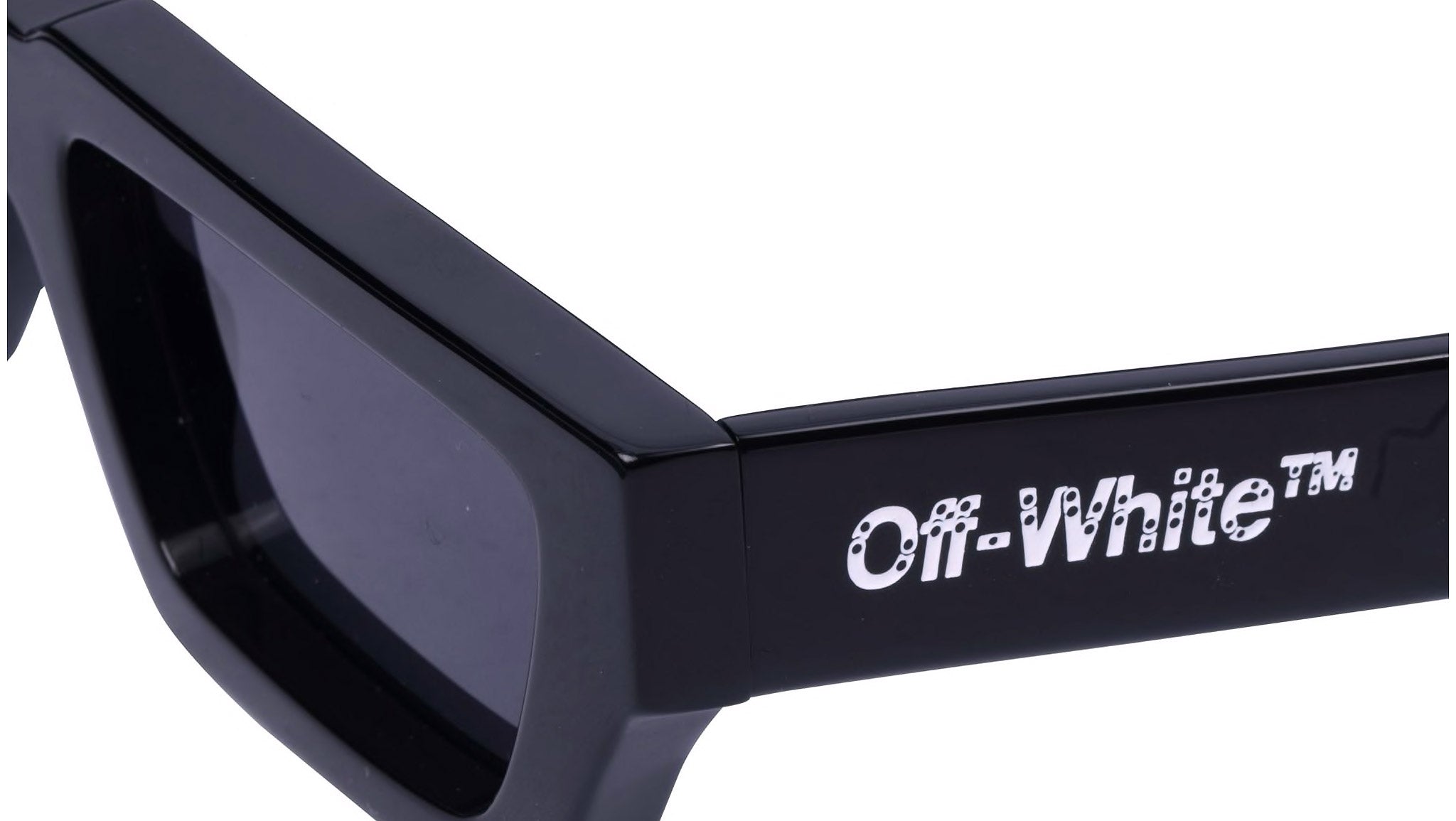 Rectangular frame sunglasses in grey with Off-White™ logo in white at hinges. Grey lenses. Off-White™ logo etched on lens. Integrated nose pads.