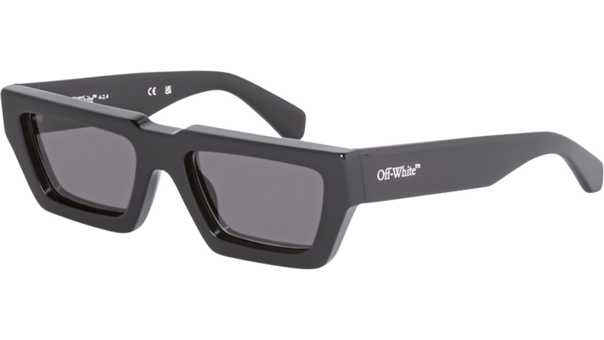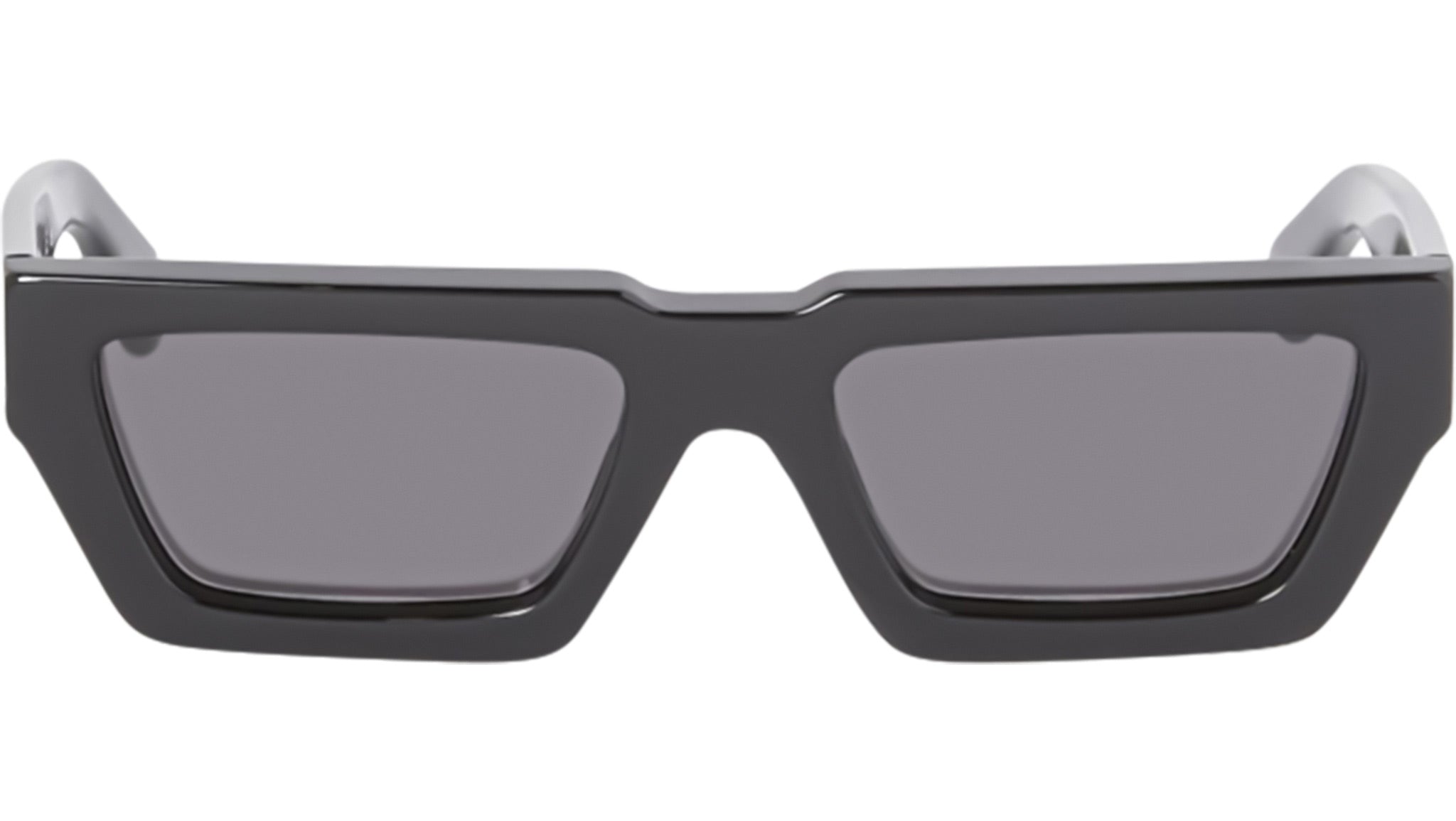 Occhiali da sole Off-White modello Manchester codice colore 1007 con frontale in acetato nero e lenti cat. 3 in polimero CR-39 grigio scuro. Rivenditore autorizzato Off-White Eyewear online. Gli occhiali vengono consegnati con custodia e accessori originali e sono coperti dalla garanzia ufficiale di 12 mesi del produttore.