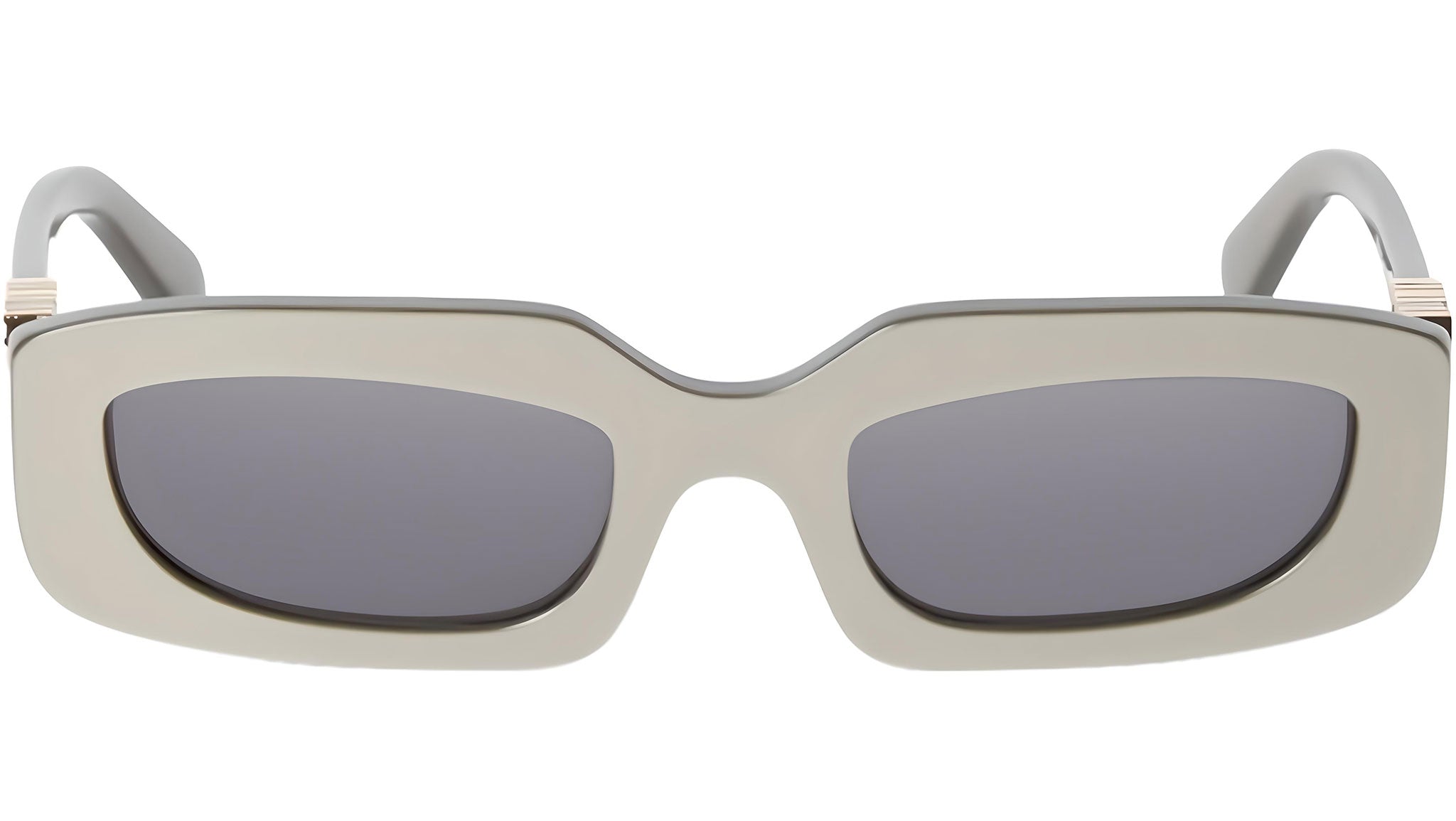 Occhiali da sole Off-White modello Renton codice colore 6E07 con frontale in acetato grigio satinato e lenti cat. 3 in polimero CR-39 grigio scuro. Rivenditore autorizzato Off-White Eyewear online. Gli occhiali vengono consegnati con custodia e accessori originali e sono coperti dalla garanzia ufficiale di 12 mesi del produttore.