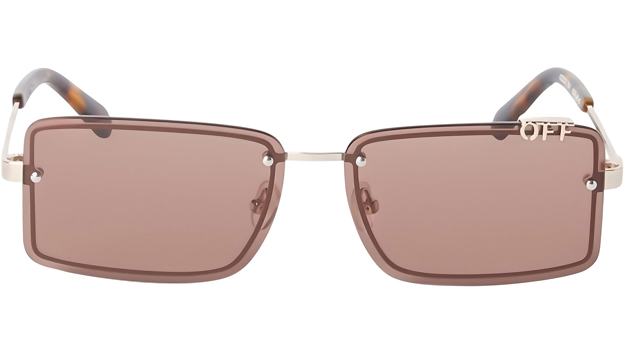 Occhiali da sole Off-White modello Tampa codice colore 7664 con frontale in metallo metallo oro lucido / avana e lenti cat. 3 in nylon marrone. Rivenditore autorizzato Off-White Eyewear online. Gli occhiali vengono consegnati con custodia e accessori originali e sono coperti dalla garanzia ufficiale di 12 mesi del produttore.