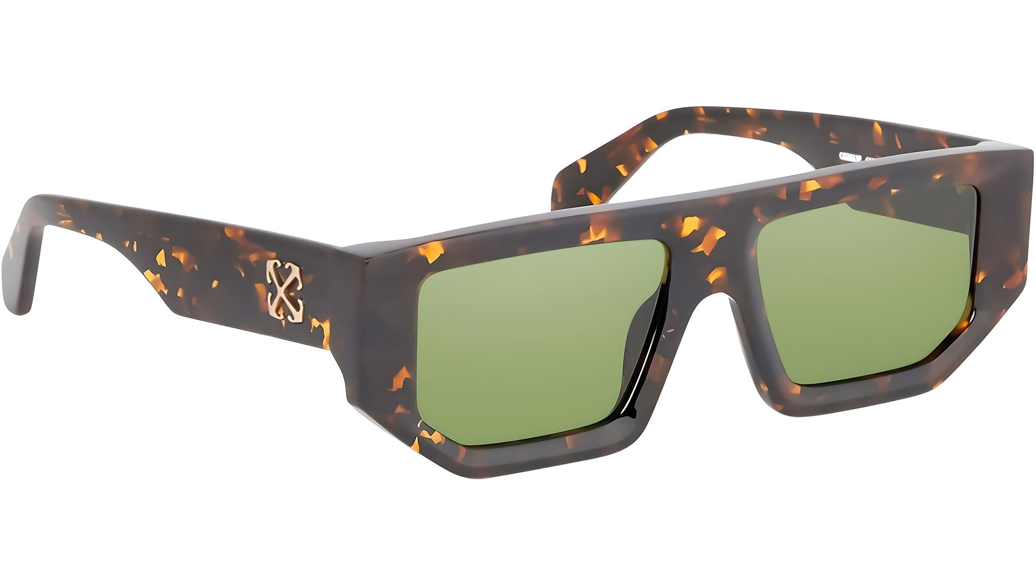 Occhiali da sole Off-White modello Vancouver codice colore 6055 con frontale in acetato tartaruga e lenti cat. 3 in polimero CR-39 verde. Rivenditore autorizzato Off-White Eyewear online. Gli occhiali vengono consegnati con custodia e accessori originali e sono coperti dalla garanzia ufficiale di 12 mesi del produttore.