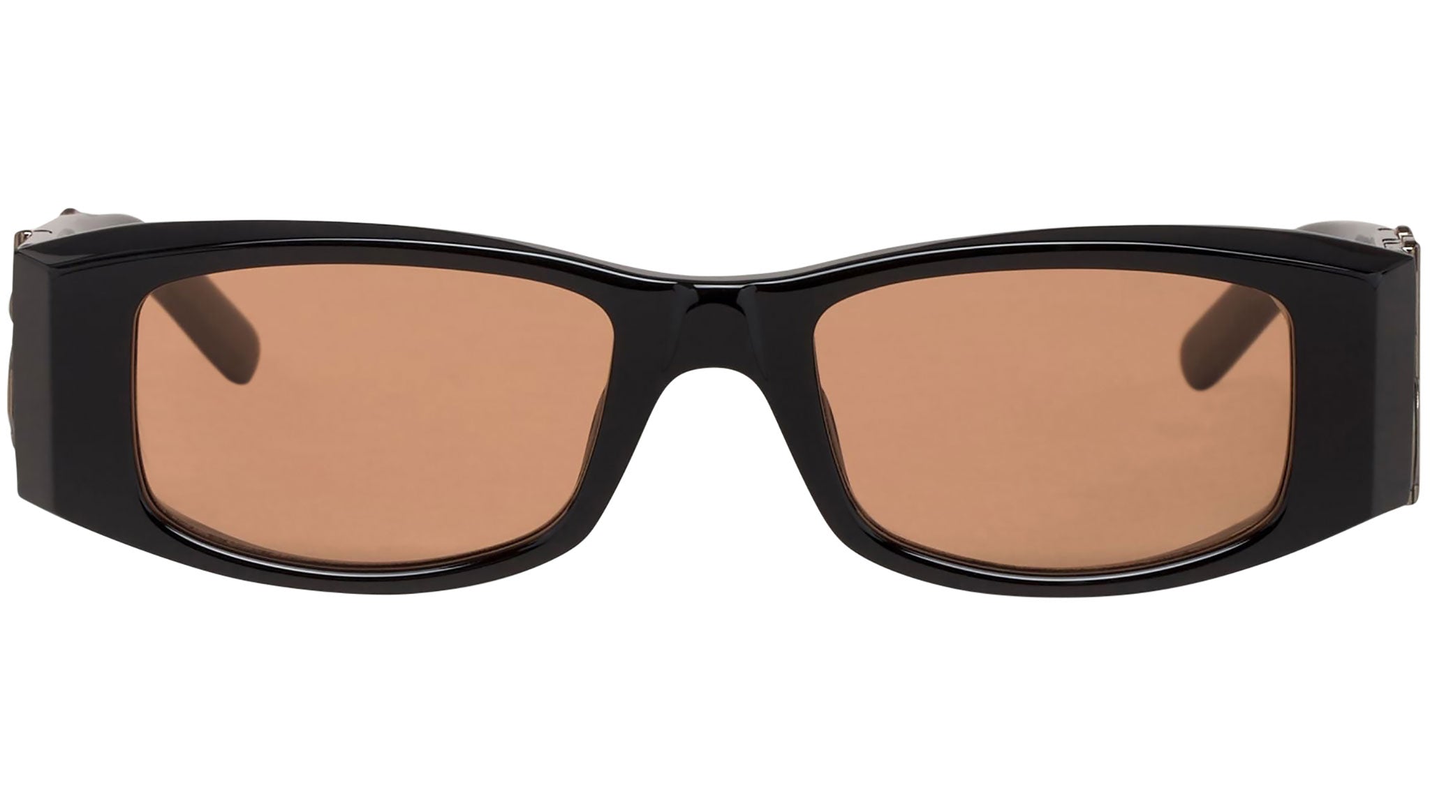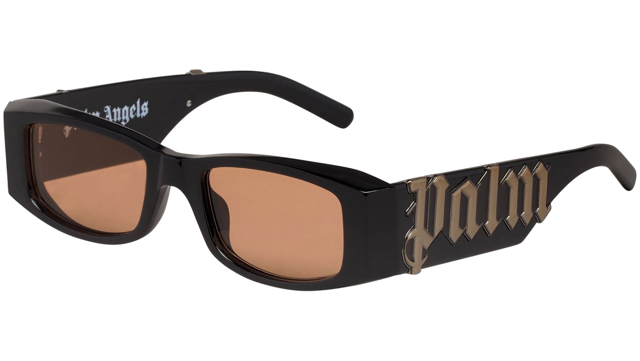A subtle 90’s feeling matching with a rock attitude: angel presents a solid structure, where the maxi Palm Angels logo in the iconic goth font of the brand steadily marks its personality, clashing the ordinary. Rectangular sunglasses in black with orange lenses. "Palm Angels" logo printed at sides. 10% plastic. 80% acetate. 10% metal