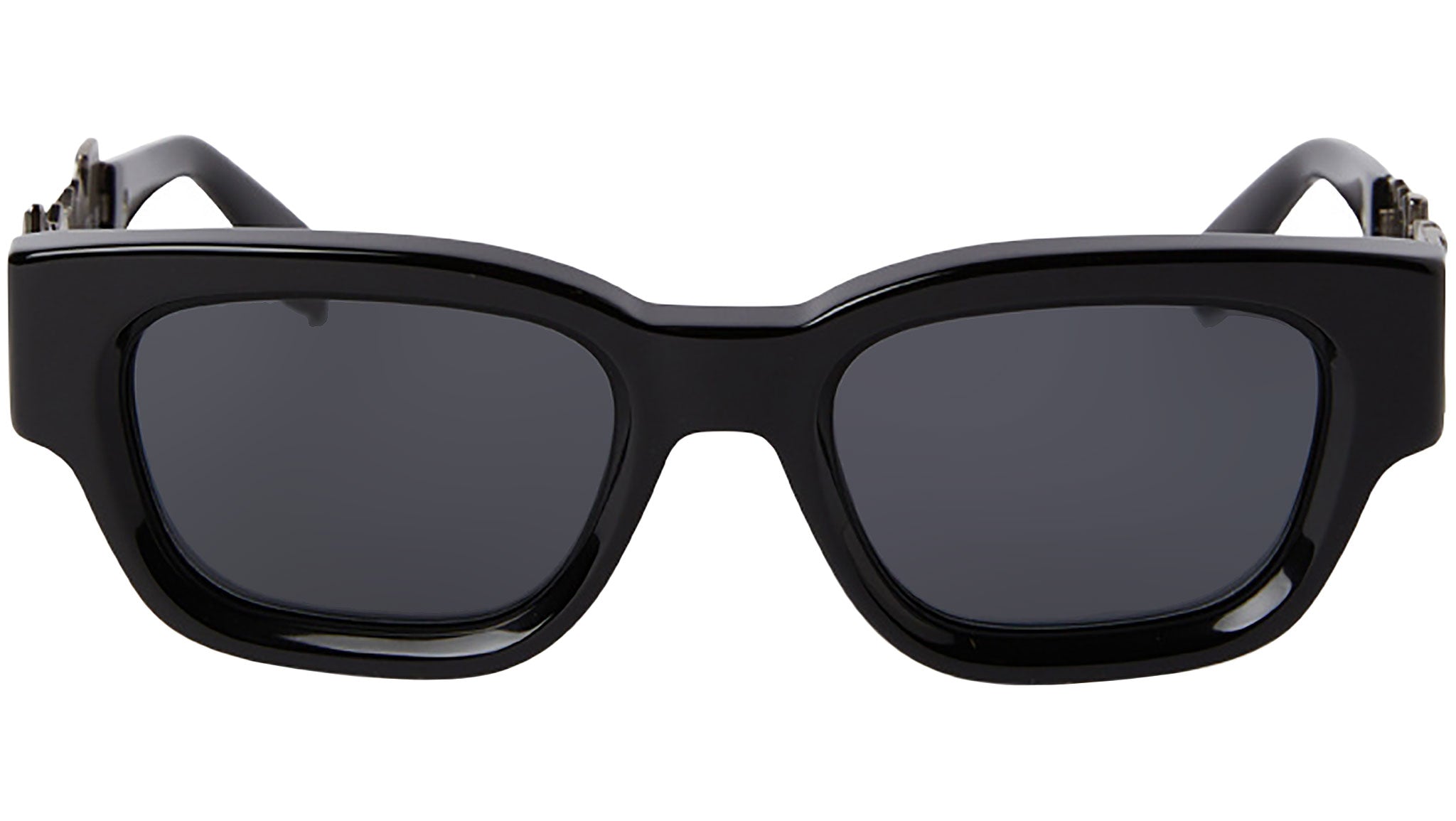 Con un design morbido a forma quadrata, gli occhiali da sole Posey di Palm Angels offrono una montatura classica, ma con un tocco innovativo. La spessa parte frontale si abbina elegantemente a stanghette più sottili, creando un contrasto sorprendente. Uno stile facile da indossare, che si distingue per la sua silhouette geometrica e per i raffinati dettagli levogati. Una delle caratteristiche distintive è il logo di Palm Angels, reinterpretato e incorporato nelle stanghette. Il design del logo, a due livelli, consiste in una base nera con un strato metallico sovrapposto che mostra le parole "Palm" e "Angels" nel loro iconico carattere gotico. Le scelte di colore: nero intenso, bianco puro o un nude chic, ciascuno completato da dettagli in metallo argento.