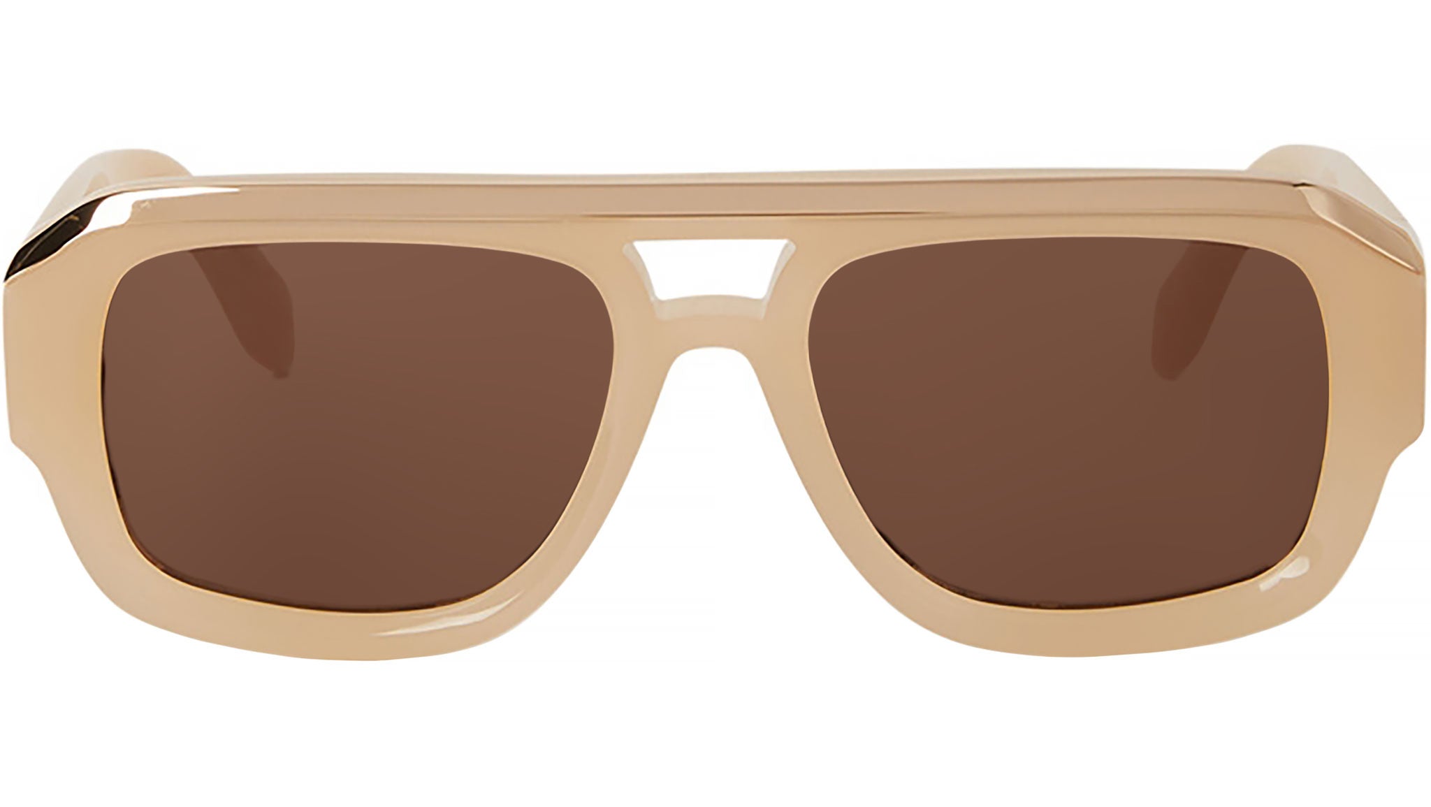 Gli occhiali da sole Stockton di Palm Angels reinterpretano il classico modello da pilota in una più moderna silhouette rettangolare, meticolosamente scolpita, che si estende elegantemente verso i lati del viso. È una montatura senza tempo che fonde il fascino retrò con la raffinatezza contemporanea. Un sofisticato doppio ponte con barra superiore in metallo evidenzia l'estetica raffinata del brand. Le aste piatte e affusolate mettono in mostra un delicato logo 3D in metallo, che aggiunge un tocco di lusso. Sposando le vibrazioni retrò con il design moderno, gli Stockton sono disponibili nei colori nero jet, avana ricco, grigio tenue con lenti verdi e nudo classico.