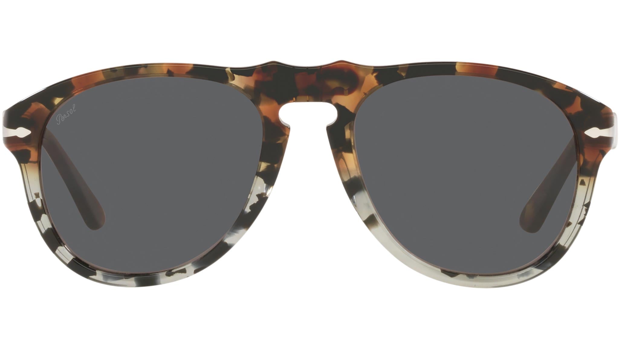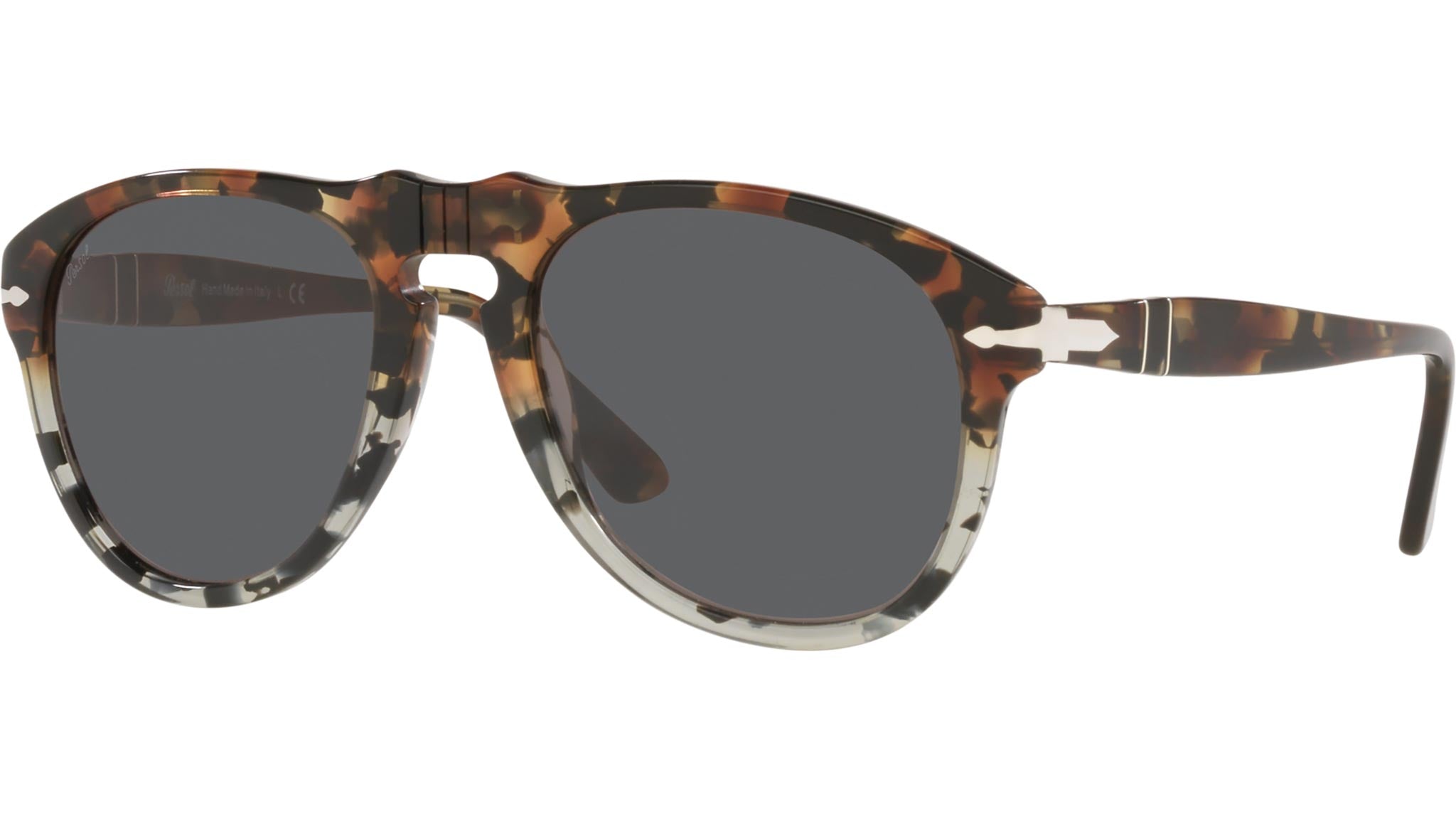 Occhiali da sole Persol modello PO0649 codice colore 1159B1 con montatura color tartarugato grigio marrone full rim acetato e lenti in vetro color grigio.