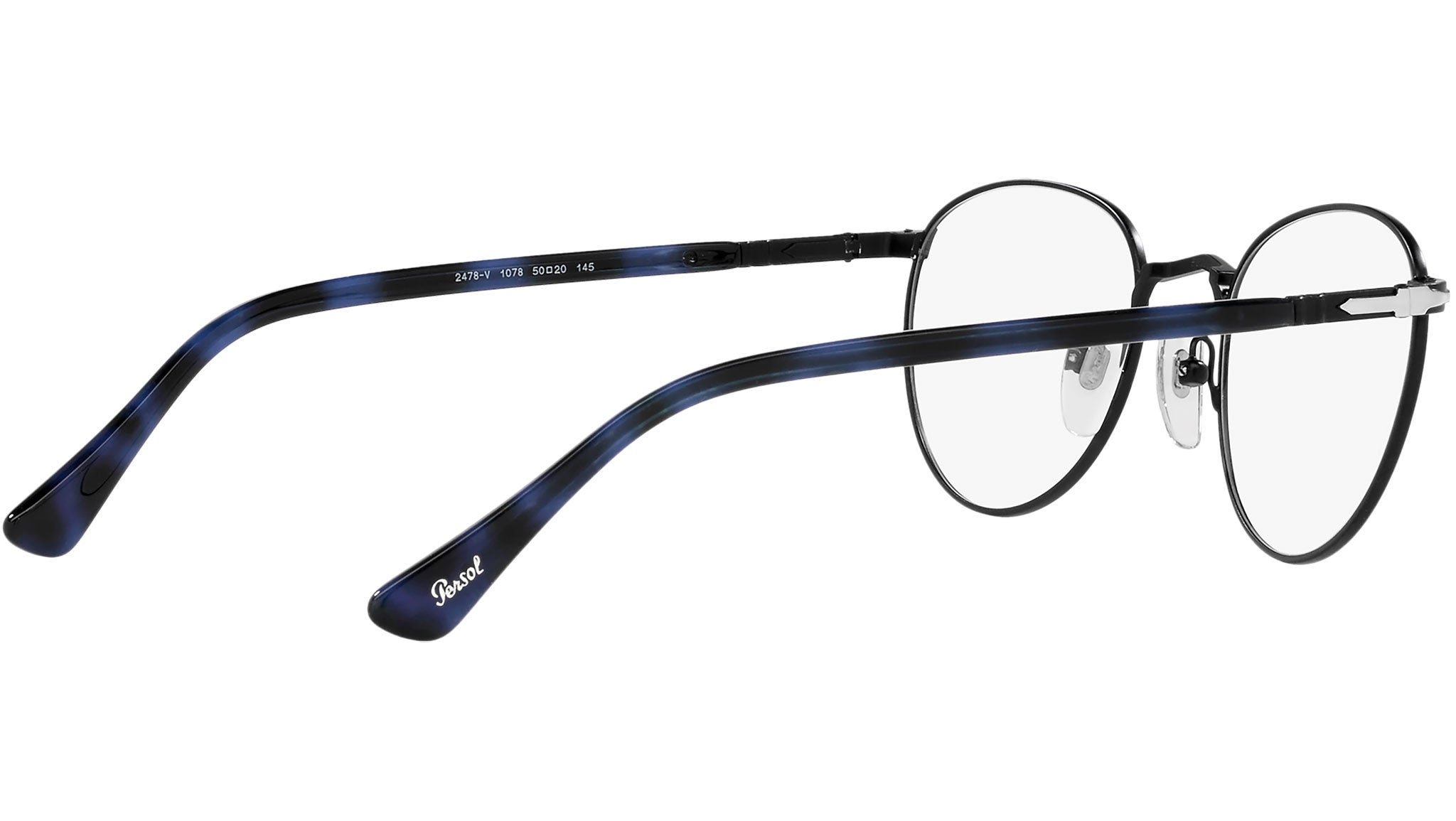 Occhiali da vista Persol modello PO2478V codice colore 1078 con montatura full rim in metallo color nero e lenti demo.