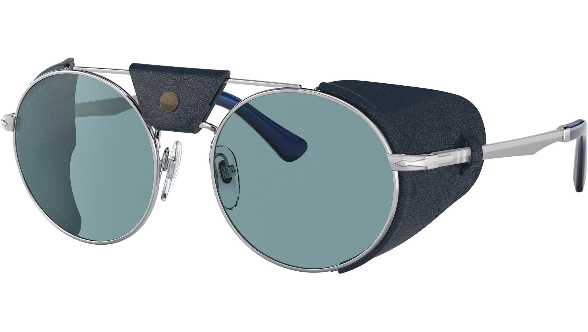 Occhiali da sole Persol modello PO2496SZ codice colore 1139P1 con montatura color argento full rim metallo e lenti in vetro color verde.