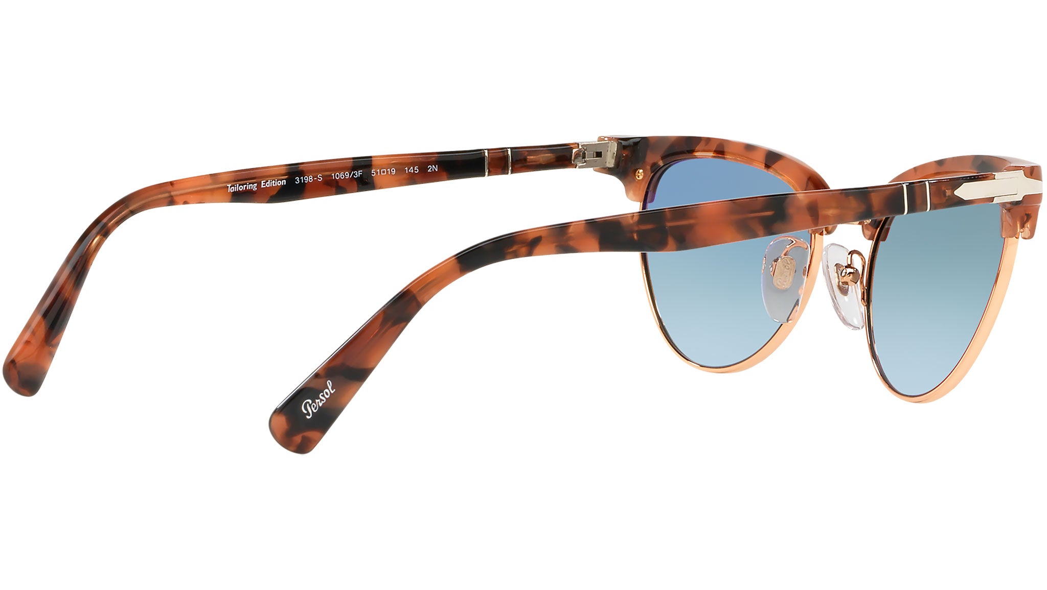 Occhiali da sole Persol PO3198S codice colore 10693F tortora rosa in acetato con lenti color blu. Persol fonde in modo armonioso estetica e tecnologia. Dedica un'attenzione meticolosa a ogni dettaglio, nel coniugare stile distintivo e soluzioni pratiche. Guidata da una passione incrollabile per il perfezionamento delle abilità artigianali e da una ricerca incessante in innovazione, Persol incarna la vera qualità italiana. Il suo nome evocativo significa 'per il sole', testmonianza viva del ricco patrimonio di maestria superiore ed eccellenza, all'apice della manifattura italiana artigianale. Rinomata per il suo design senza tempo e per la sua arte nel creare occhiali unici, il marchio è diventato una delle scelte più amate nell'ambito del cinema.