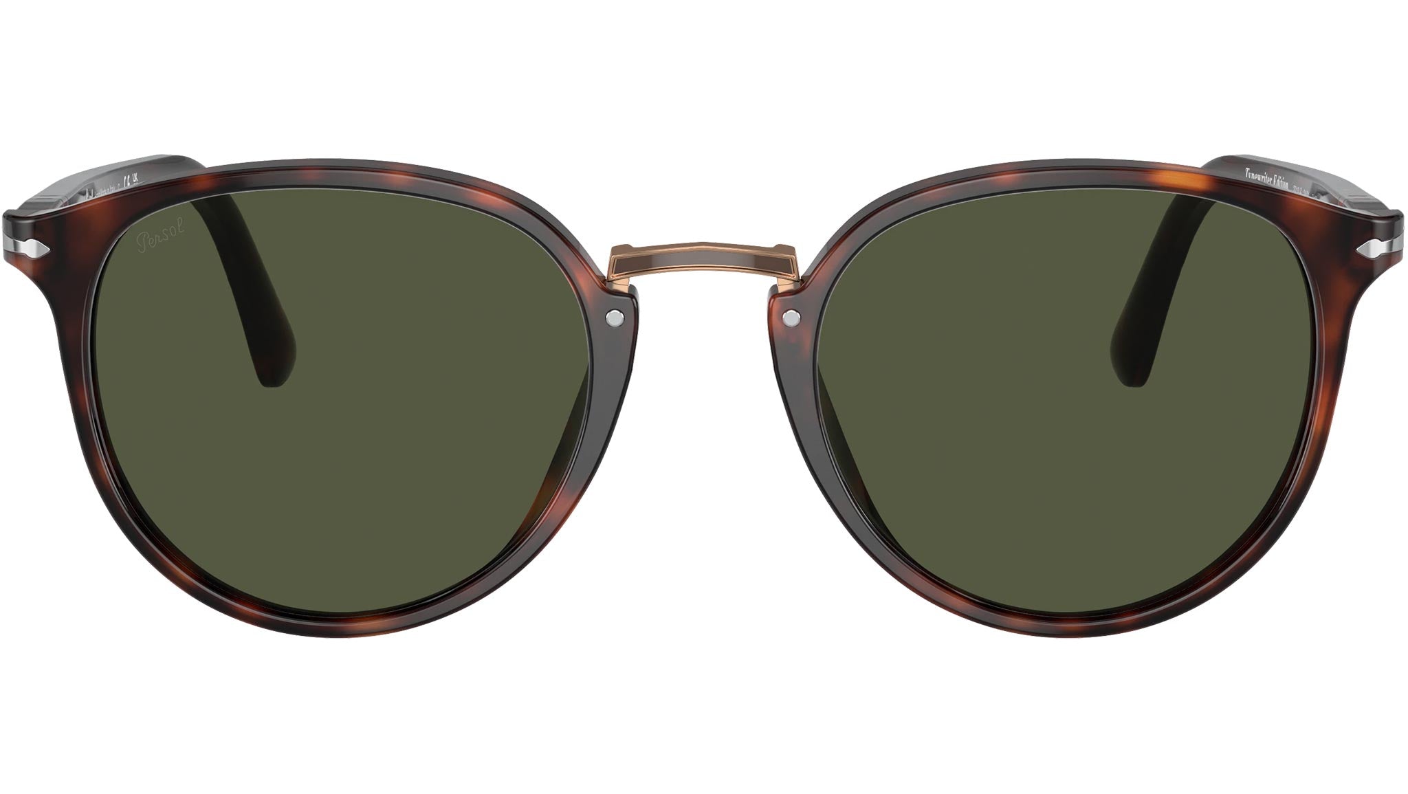 Occhiali da sole Persol modello PO3210S codice colore 24/31 con montatura color avana full rim acetato e lenti in crystal color verde.