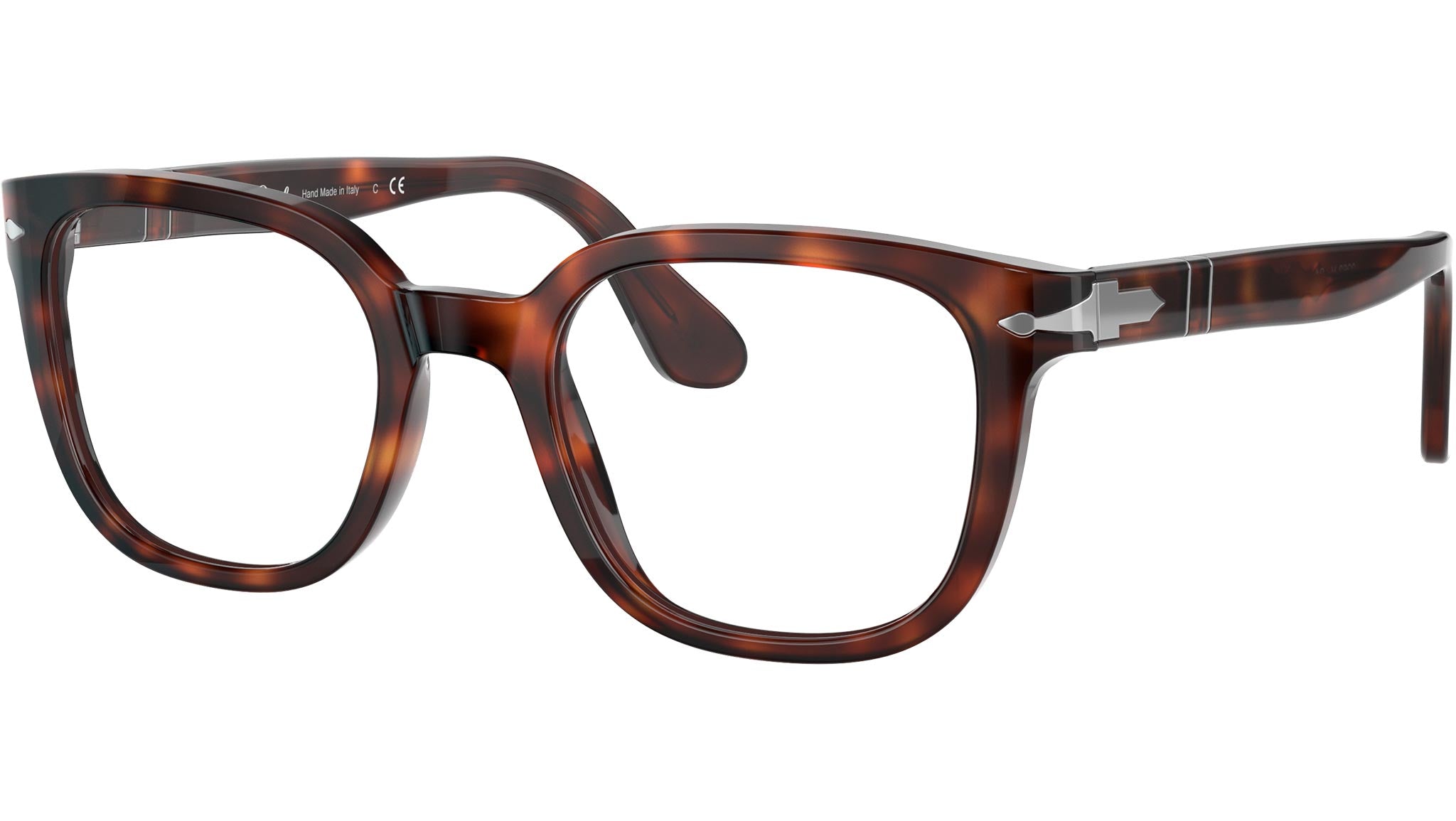 Occhiali da vista Persol modello PO3263V codice colore 24 con montatura full rim in acetato color avana e lenti demo.