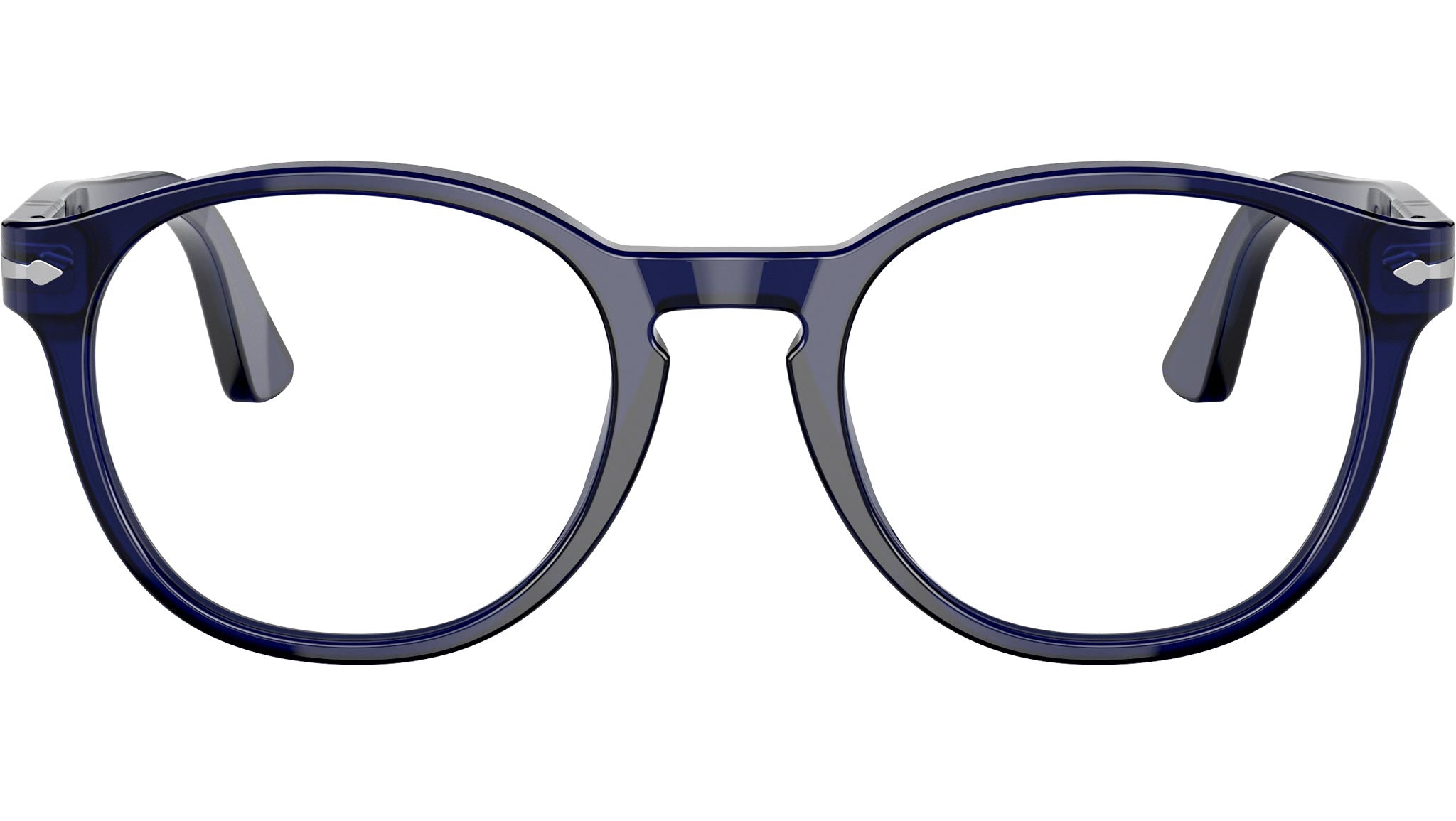 Occhiali da vista Persol modello PO3284V codice colore 181 con montatura full rim in acetato color blu e lenti demo.