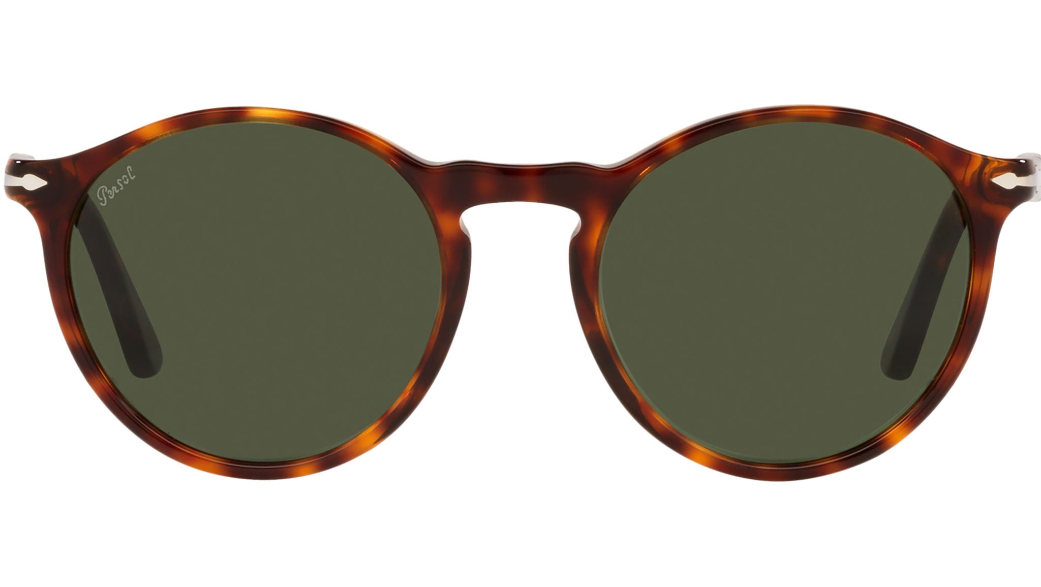 Occhiali da sole Persol modello PO3285S codice colore 24/31 con montatura color avana full rim acetato e lenti in vetro color verde.