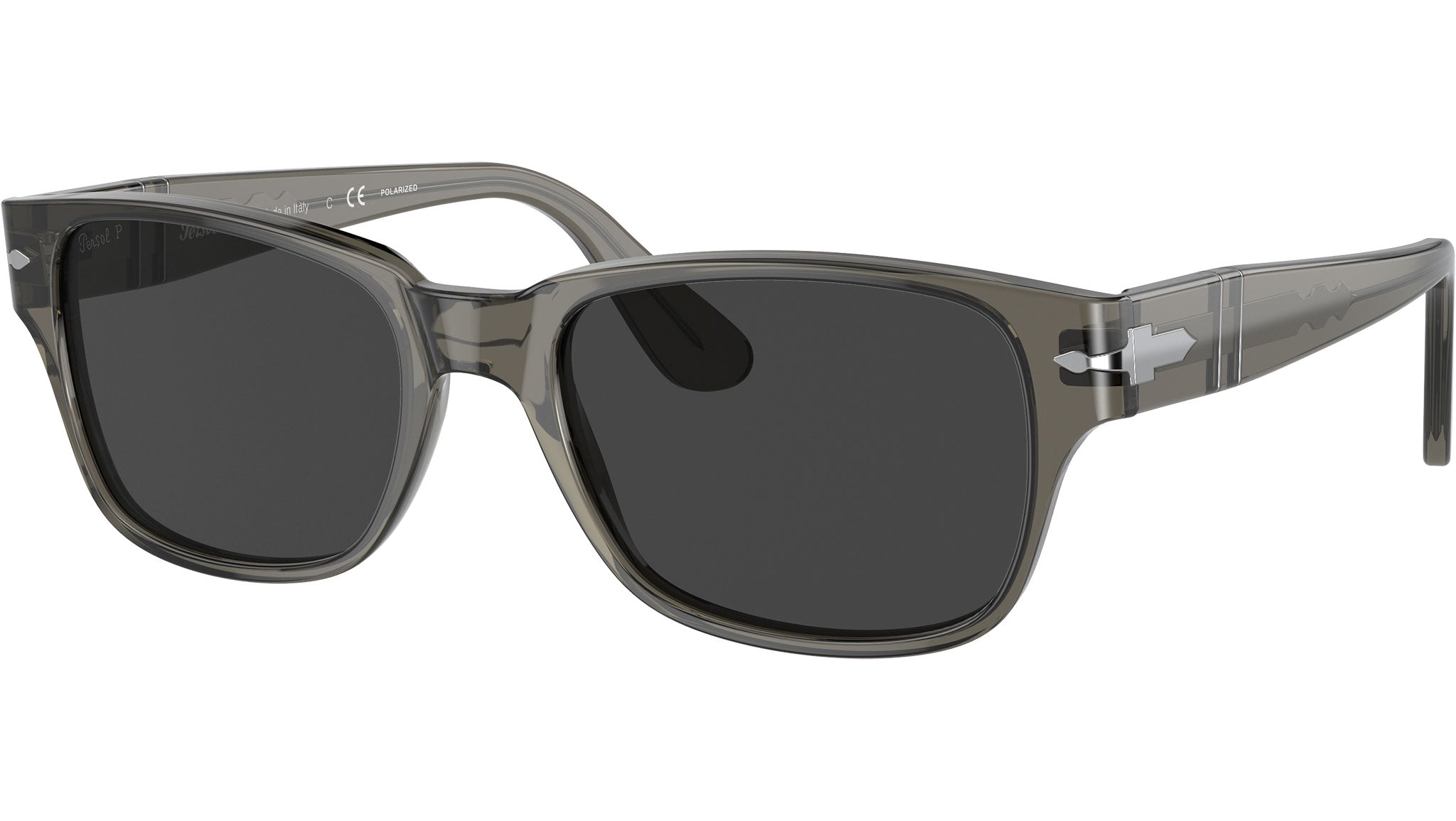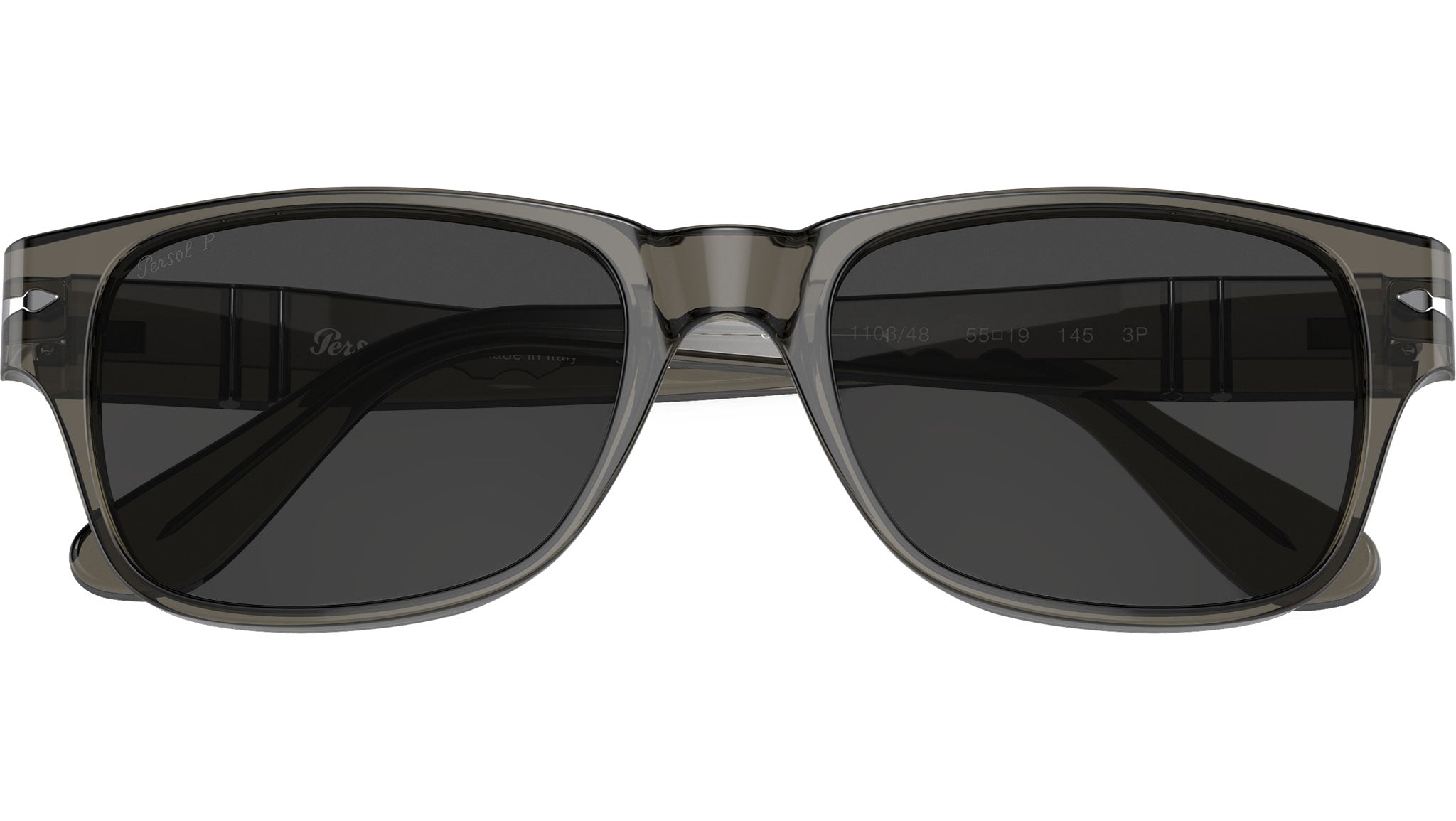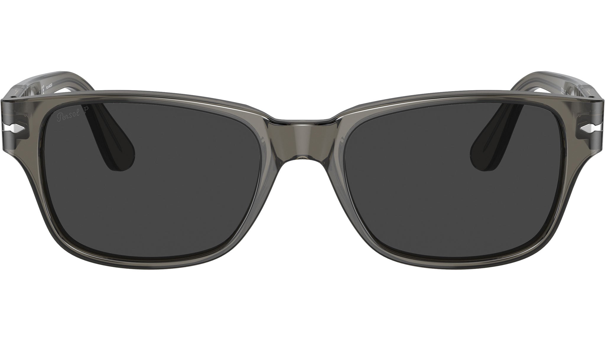 Occhiali da sole Persol modello PO3288S codice colore 110348 con montatura color grigio tortora full rim acetato e lenti in vetro color nero.