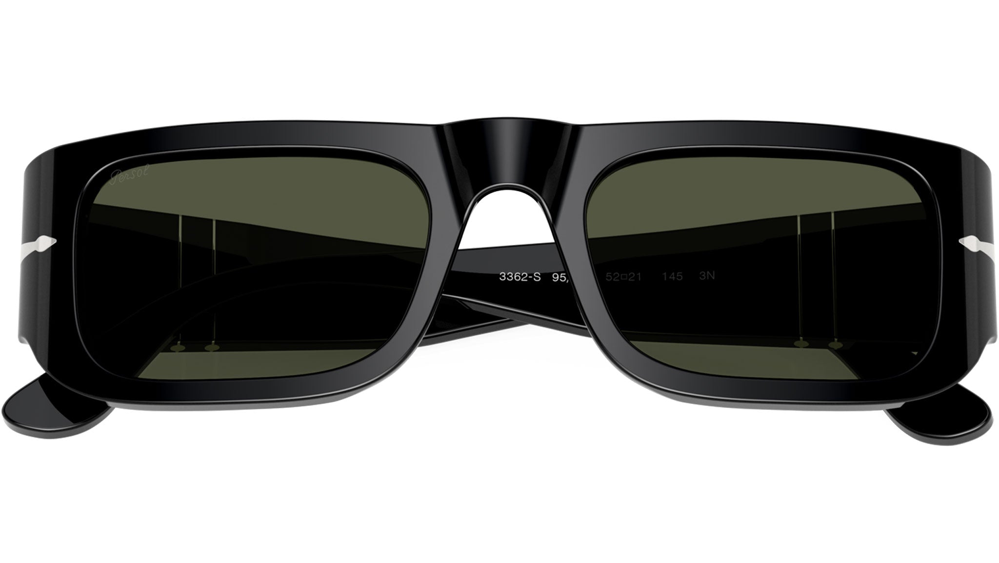 Occhiali da sole Persol unisex modello PO3362S full rim in acetato nero con lenti verde base 6. Vestibilità a ponte alto. Linea: Sartoria. Codice brand: 0PO3362S. Codice colore: 95/31. Rivenditore autorizzato online Persol Eyewear. Ogni prodotto Persol viene consegnato con astuccio originale e accessori ed è coperto da garanzia del produttore di 12 mesi.