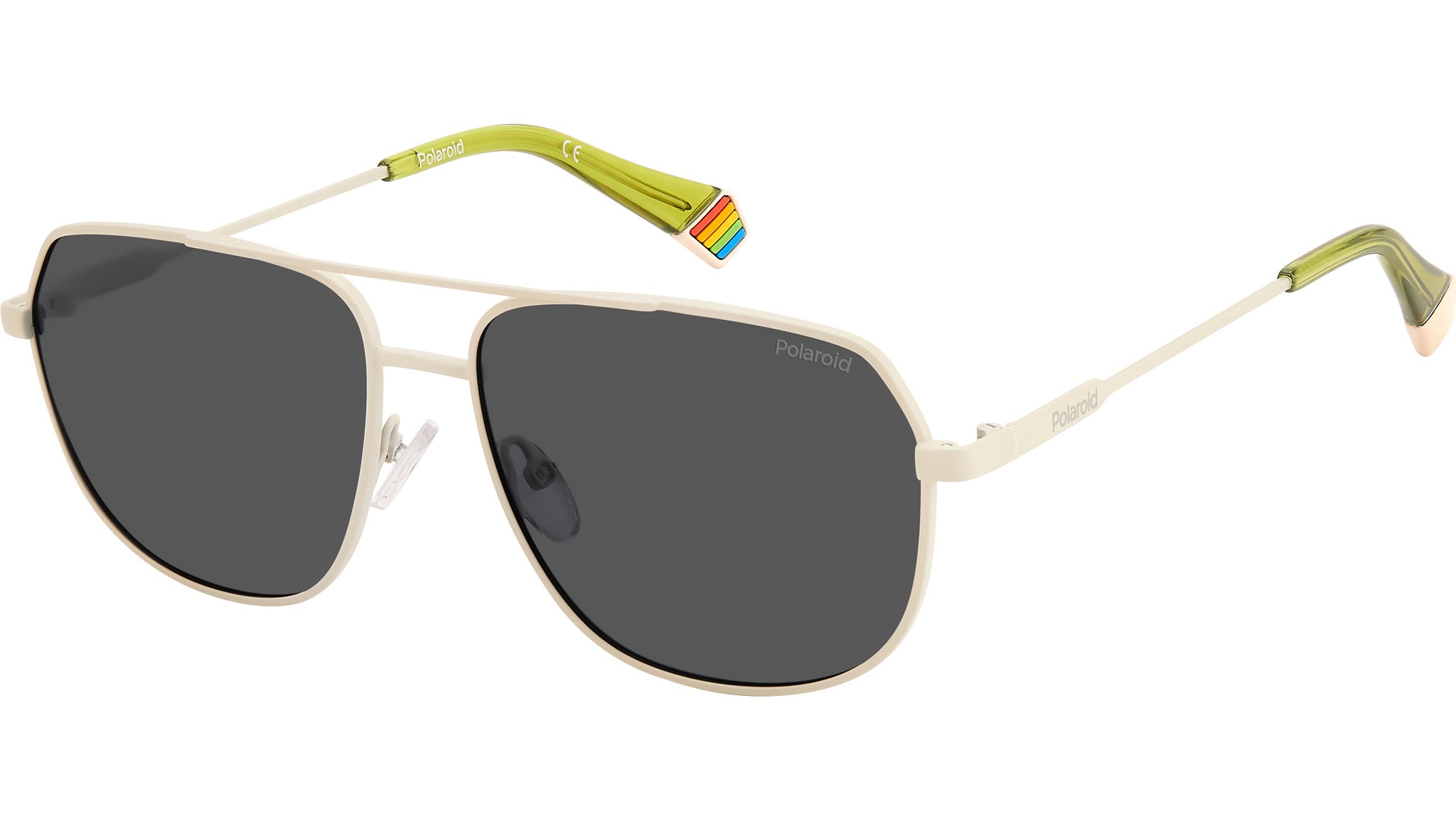 Occhiali da sole Polaroid PLD 6195/S/X Z1P M9 unisex con montatura in metallo avorio opaco e lenti grigio polarizzate. Questi occhiali da sole unisex hanno montatura in metallo sottile e confortevole, che Polaroid propone in versione galvanica oppure colorata. I comodi naselli regolabili garantiscono una perfetta calzata, il frontale geometrico è con doppio ponte, le aste sono firmate dal logo laserato e i terminali iniettati sono personalizzati dall’inserto Rainbow gommato, tratto distintivo Polaroid. Linea: Cool. Codice modello: 205697. Codice colore: Z1P M9. Rivenditore autorizzato Polaroid online. Gli occhiali vengono consegnati con custodia e accessori originali e sono coperti dalla garanzia ufficiale di 12 mesi del produttore.