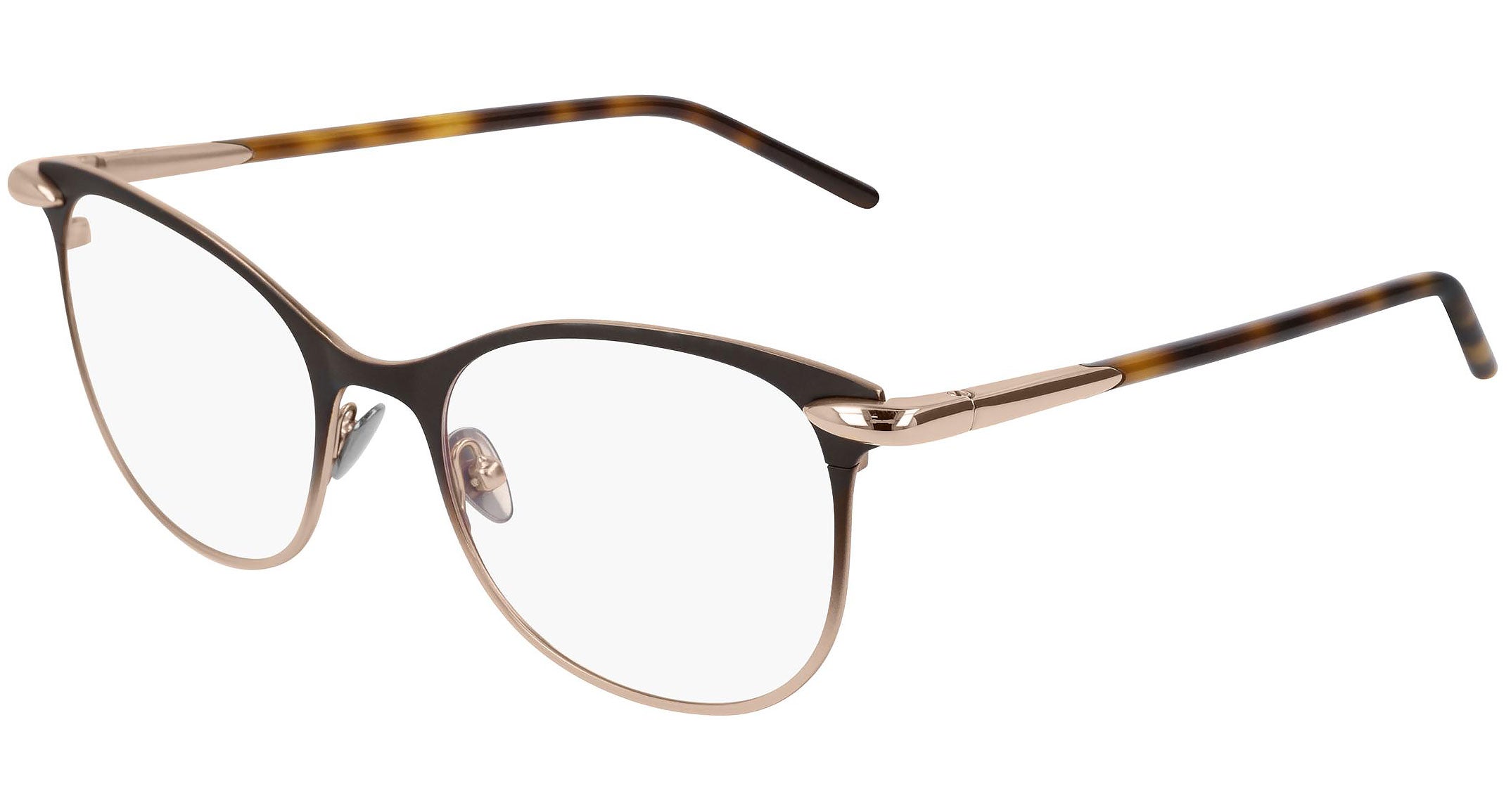 Pomellato Eyewear model PM0054O 002 featuring semimatte gradient brown/semimatte pink gold frame and gold temple. The eyewear collection reflects the iconic, colorful and unconventional aesthetic of Pomellato, reinterpreting its voluptuous shapes and precious features in a covetable selection poised on the flawless balance between artisanal precision and timeless elegance.