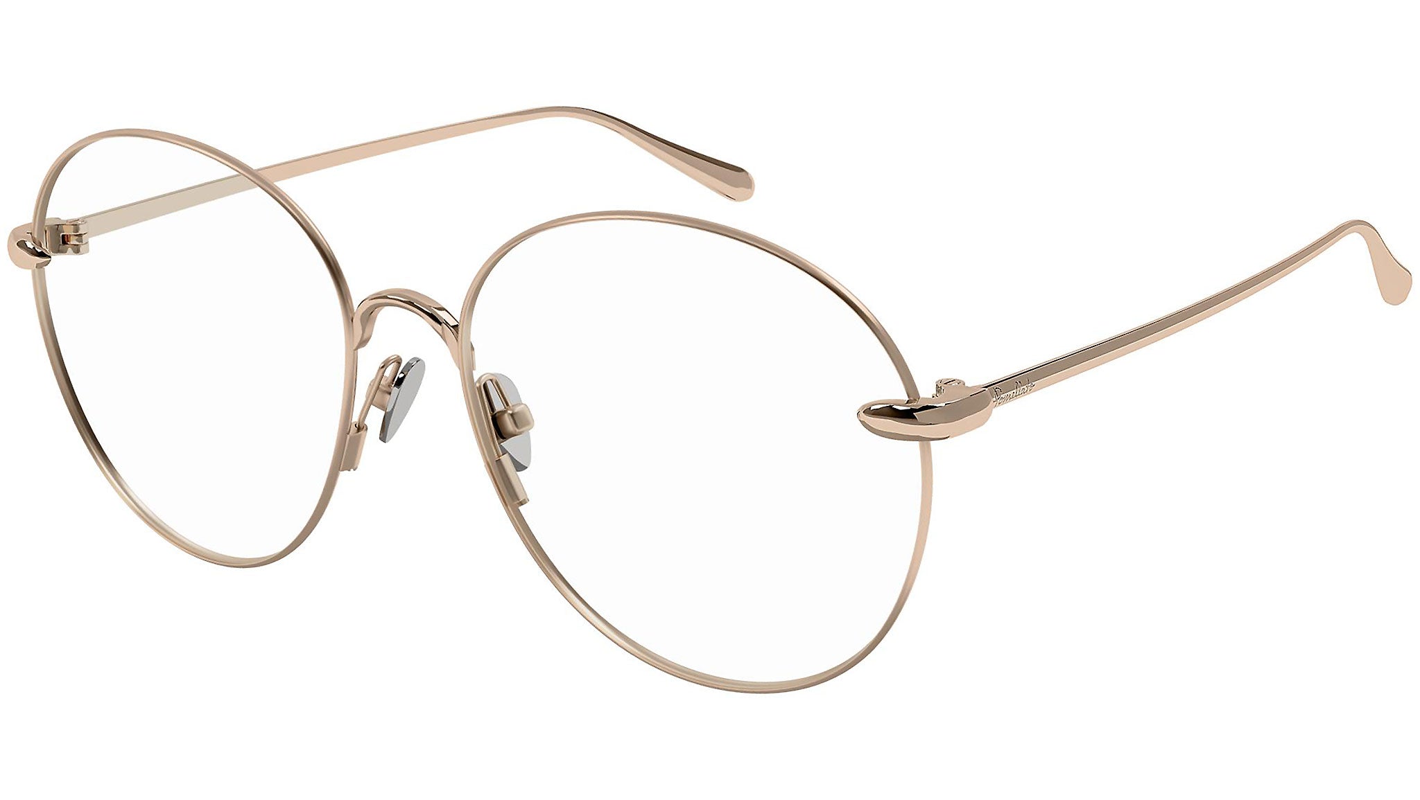 Occhiali da vista Pomellato modello 0109O, variante colore 002 oro rosa Pomellato semiopaco con astine color oro.