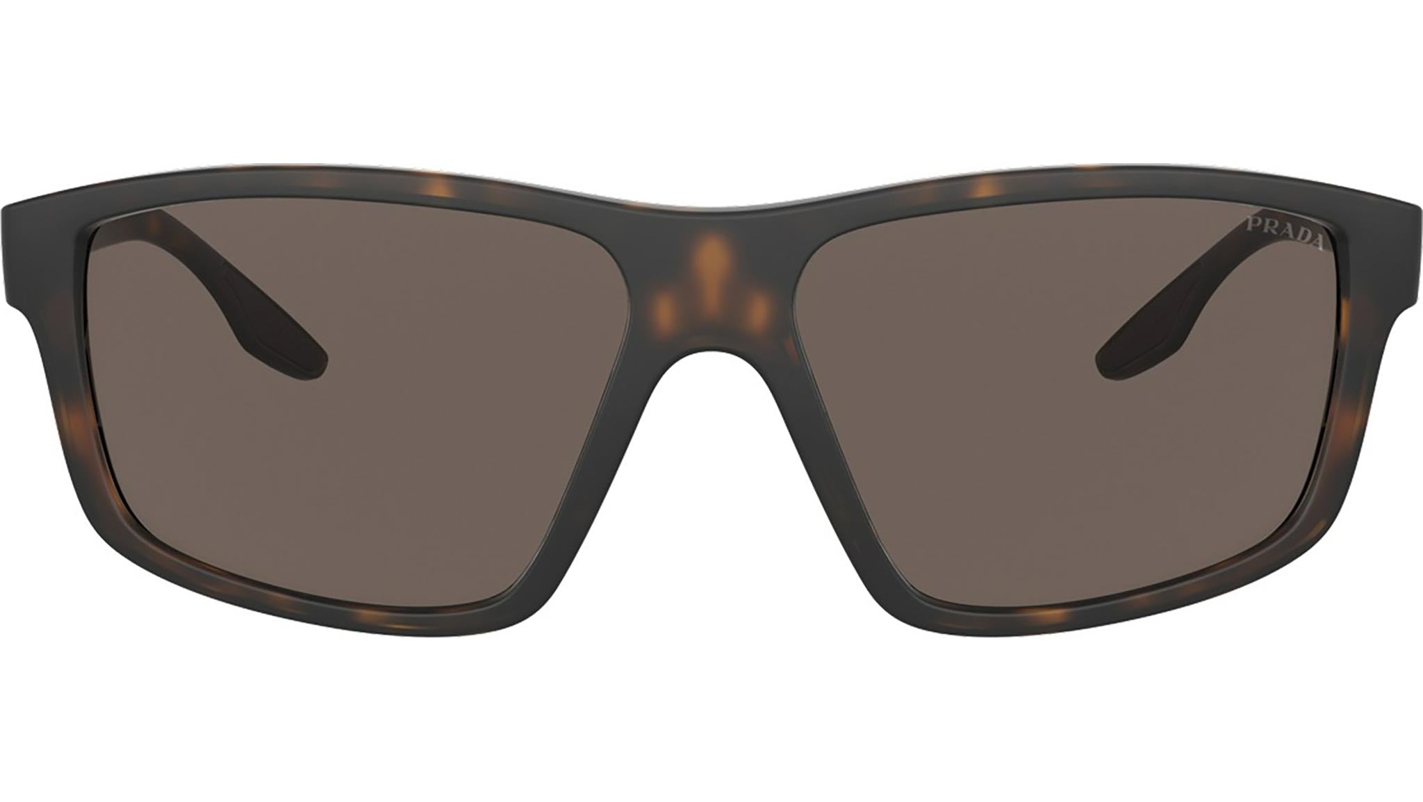 Occhiali da sole Prada Linea Rossa modello PS02XS nella variante colore gomma avana, con lenti color marrone. Una perfetta fusione dei concetti di sportswear ed eleganza contemporanea: la linea di occhiali da sole Prada Linea Rossa declina in un moderno stile casual tutta la qualità e la raffinatezza artigianale della maison Prada.