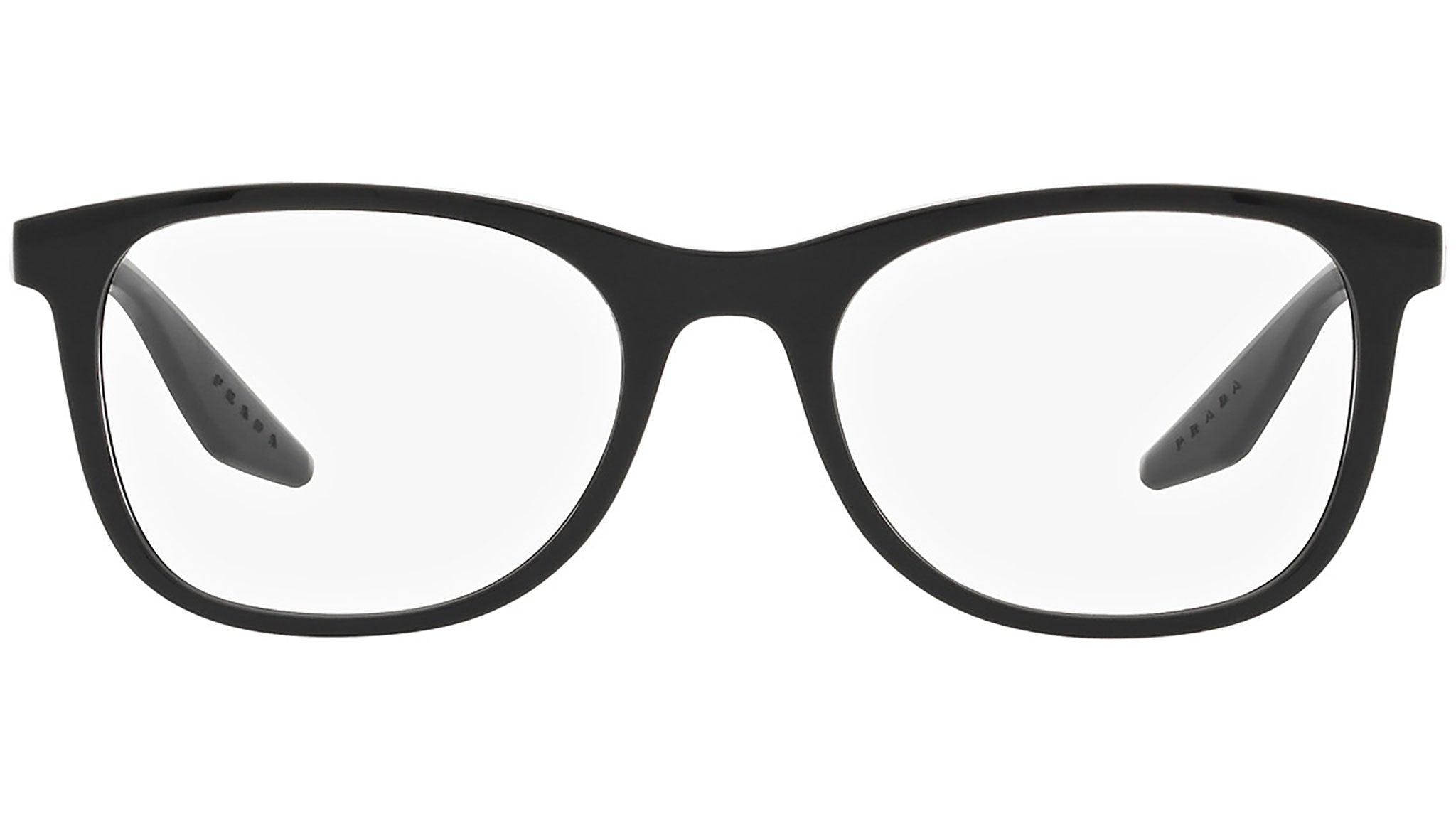 Occhiali da vista Prada Linea Rossa modello PS 05PV codice colore 1AB1O1 con montatura d-frame full rim in nylon color nero e lenti demo. Rivenditore autorizzato Prada. Ogni prodotto Prada Linea Rossa viene consegnato con astuccio originale e accessori.