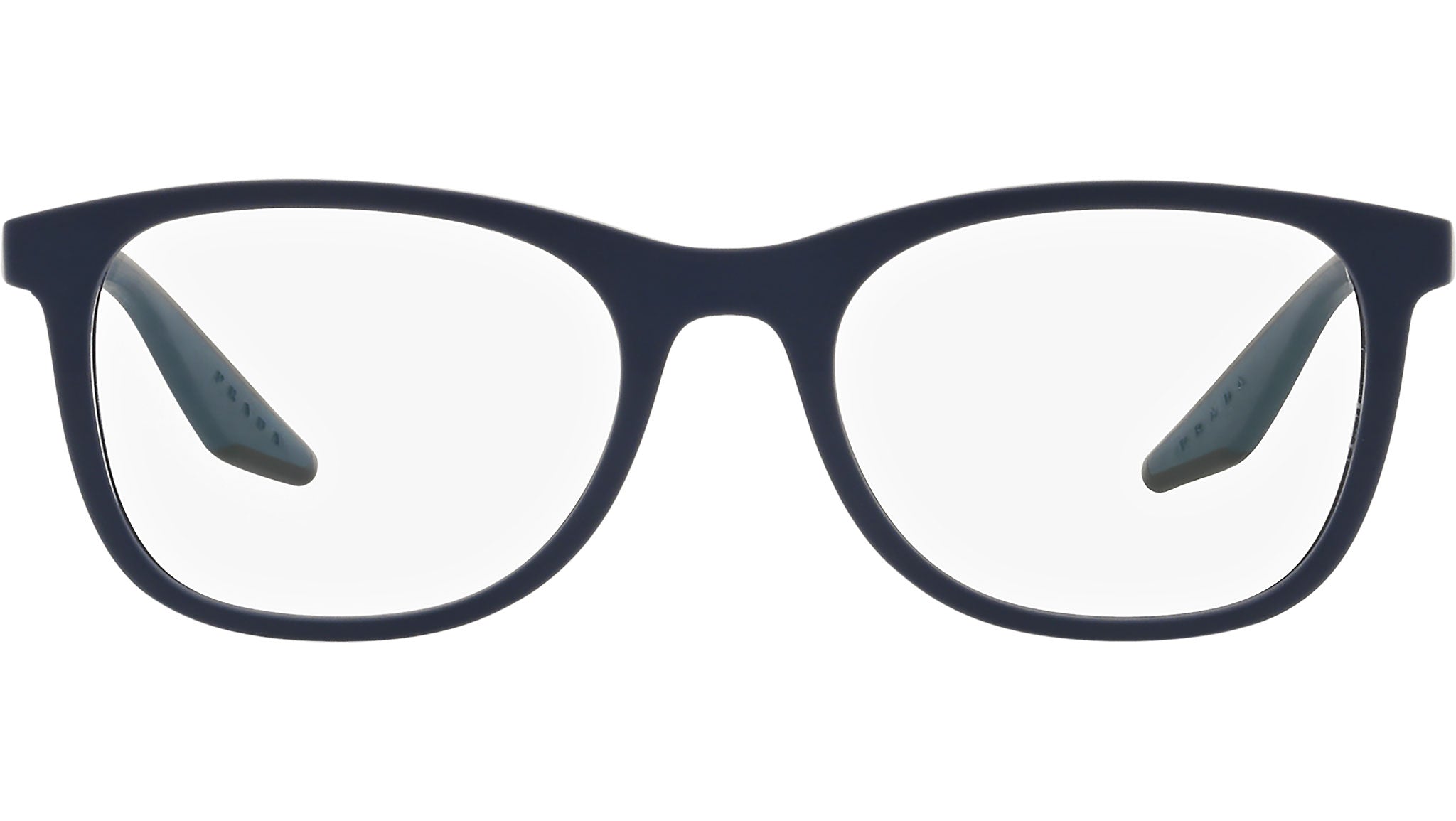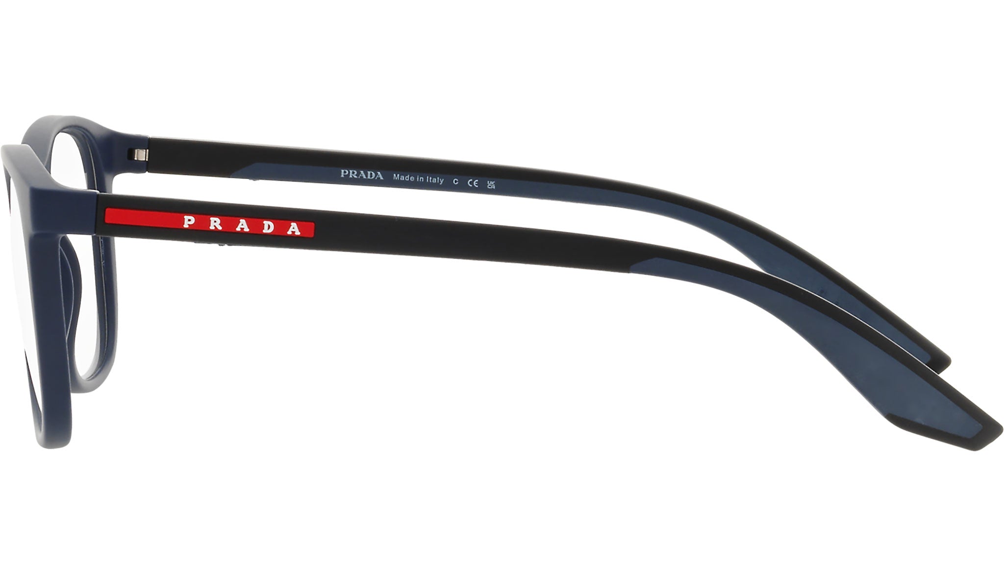 Occhiali da vista Prada Linea Rossa modello PS 05PV codice colore TFY1O1 con montatura d-frame full rim in nylon color blu gommato e lenti demo. Rivenditore autorizzato Prada. Ogni prodotto Prada Linea Rossa viene consegnato con astuccio originale e accessori.