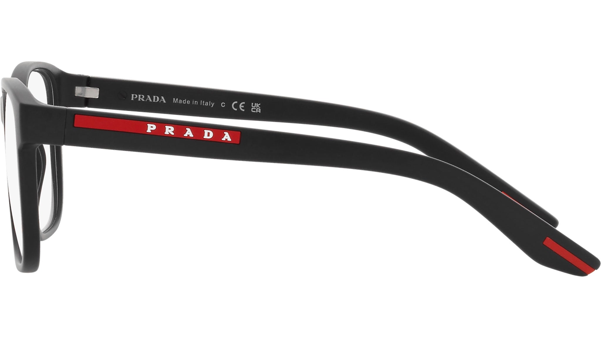 Occhiali da vista Prada Linea Rossa modello PS 06PV codice colore DG01O1 con montatura d-frame full rim in nylon color nero gommato e lenti demo. Rivenditore autorizzato Prada. Ogni prodotto Prada Linea Rossa viene consegnato con astuccio originale e accessori.