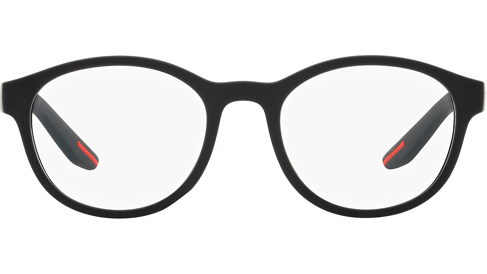 Occhiali da vista Prada Linea Rossa modello PS 07PV codice colore DG01O1 con montatura panto full rim in nylon color nero gommato e lenti demo. Rivenditore autorizzato Prada. Ogni prodotto Prada Linea Rossa viene consegnato con astuccio originale e accessori.