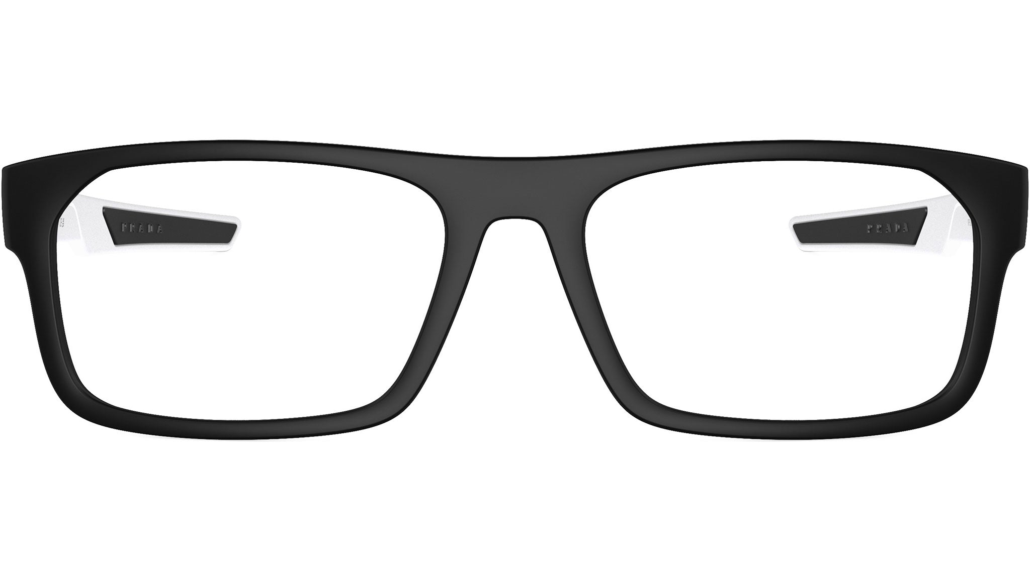 Occhiali da vista Prada Linea Rossa modello PS 08OV codice colore 14Q1O1 con montatura rettangolare full rim in nylon color nero opaco e lenti demo. Rivenditore autorizzato Prada. Ogni prodotto Prada Linea Rossa viene consegnato con astuccio originale e accessori.