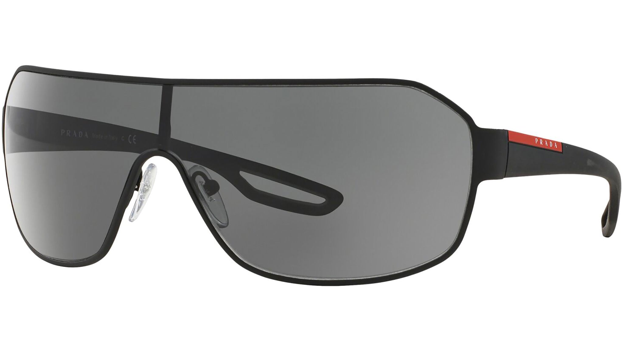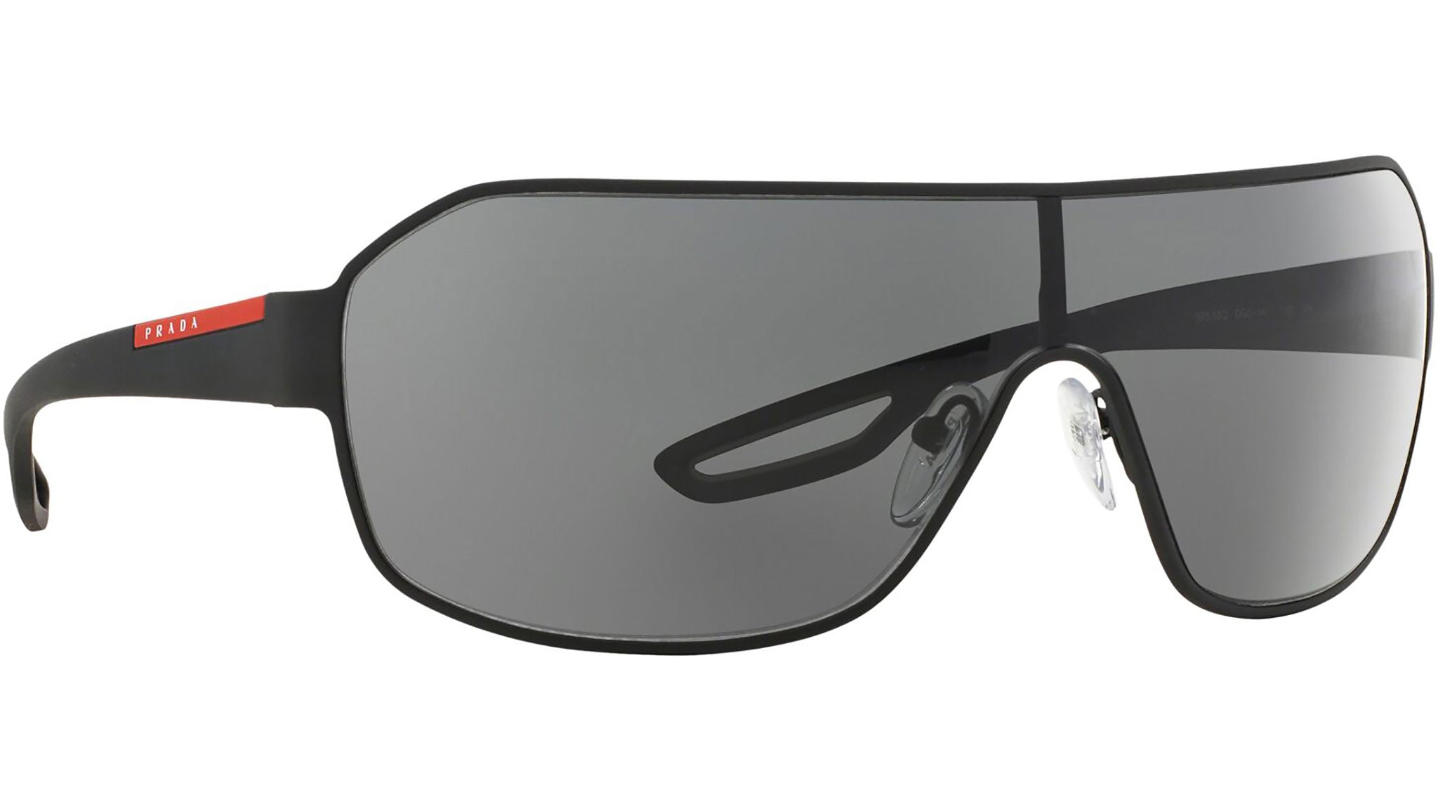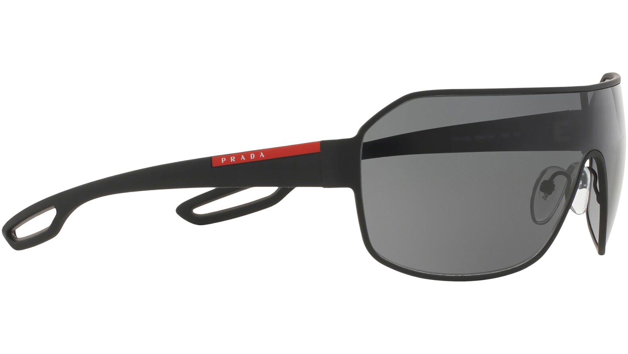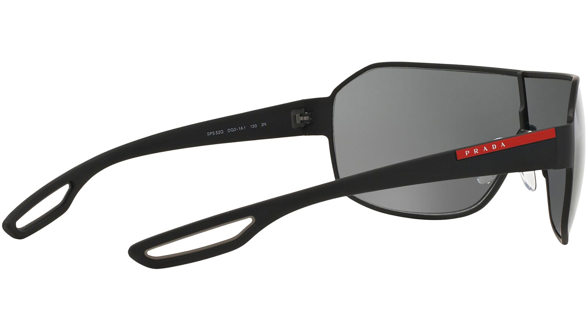 Prada Linea Rossa sunglasses model PS 52QS, black rubber frame variant, color code DG01A1 with grey lens. Prada Linea Rossa Sun Collection conveys an everyday casual style with all the quality and craftsmanship of the Prada brand.