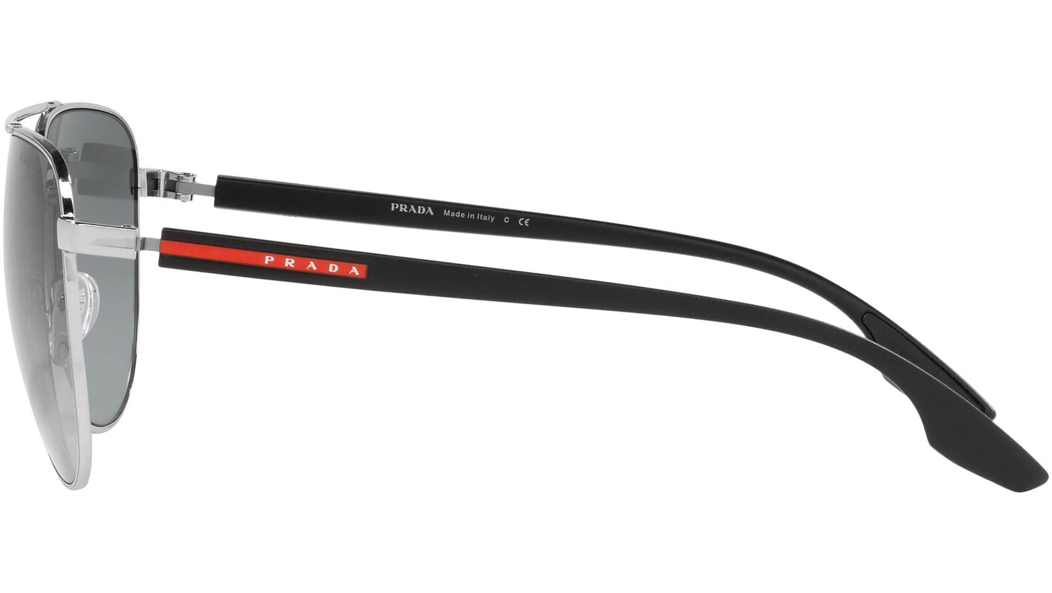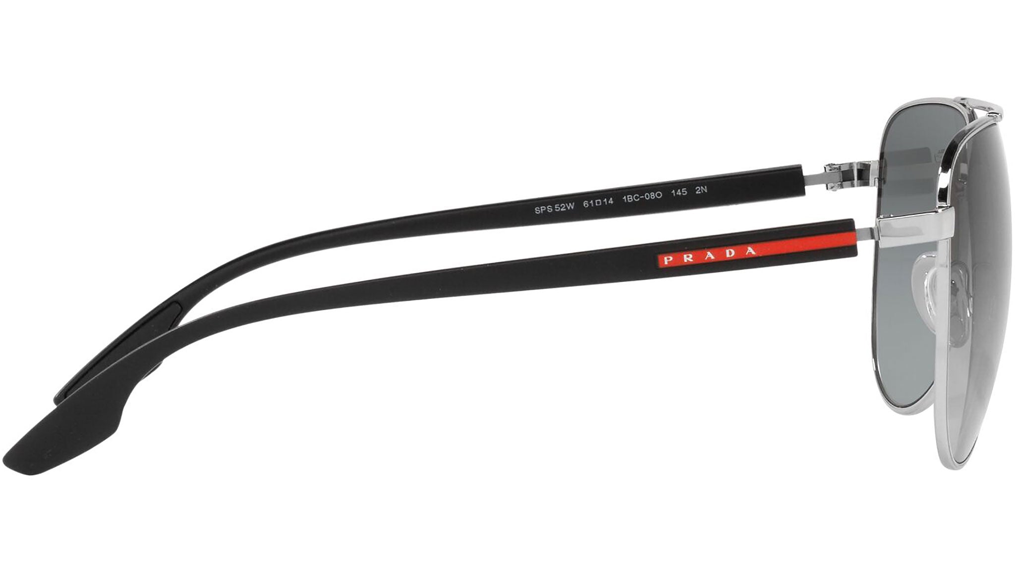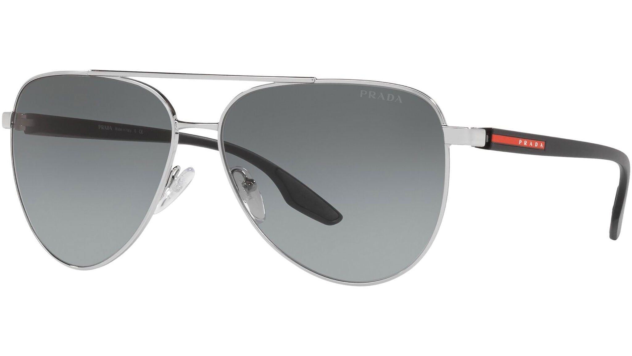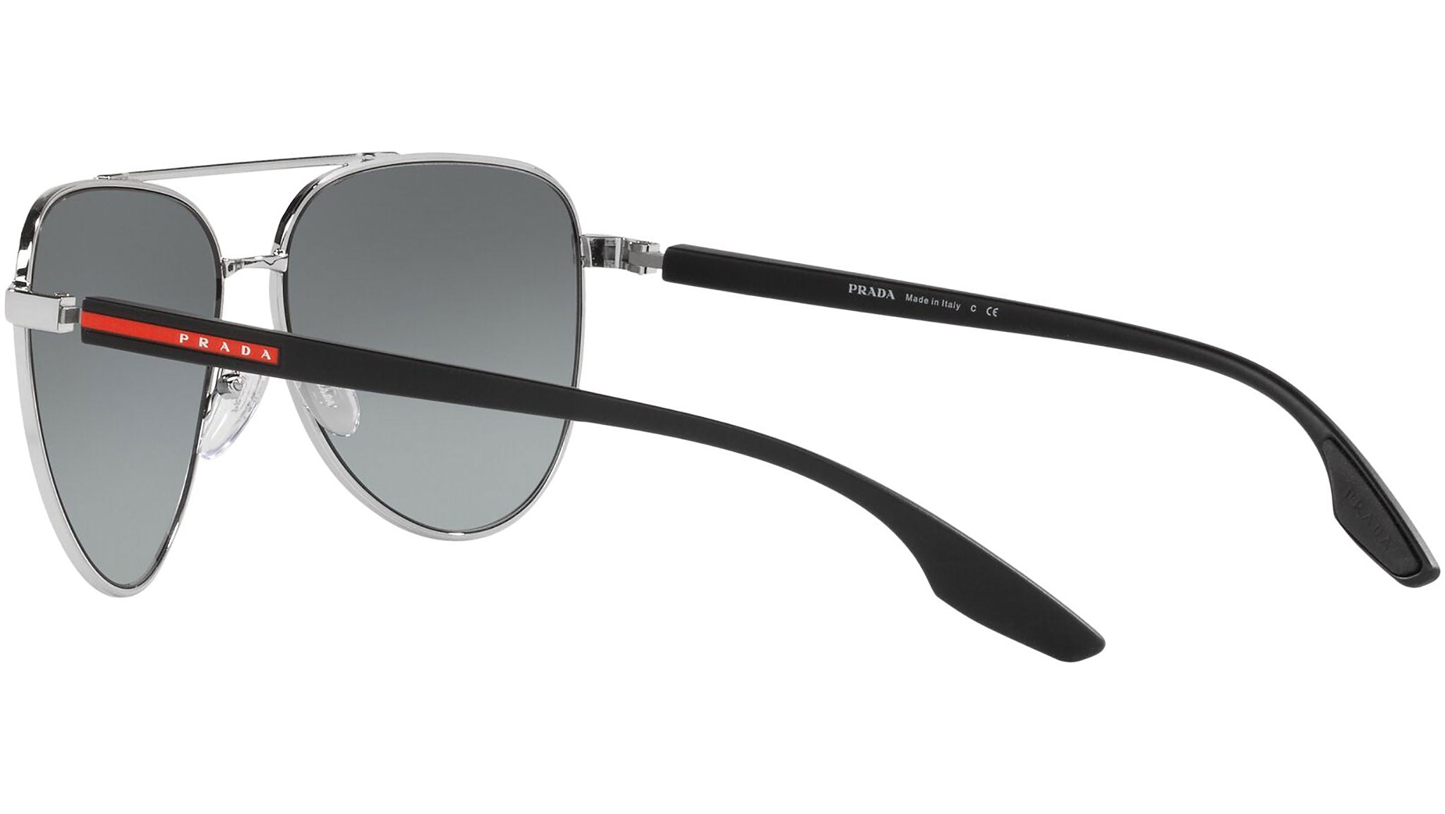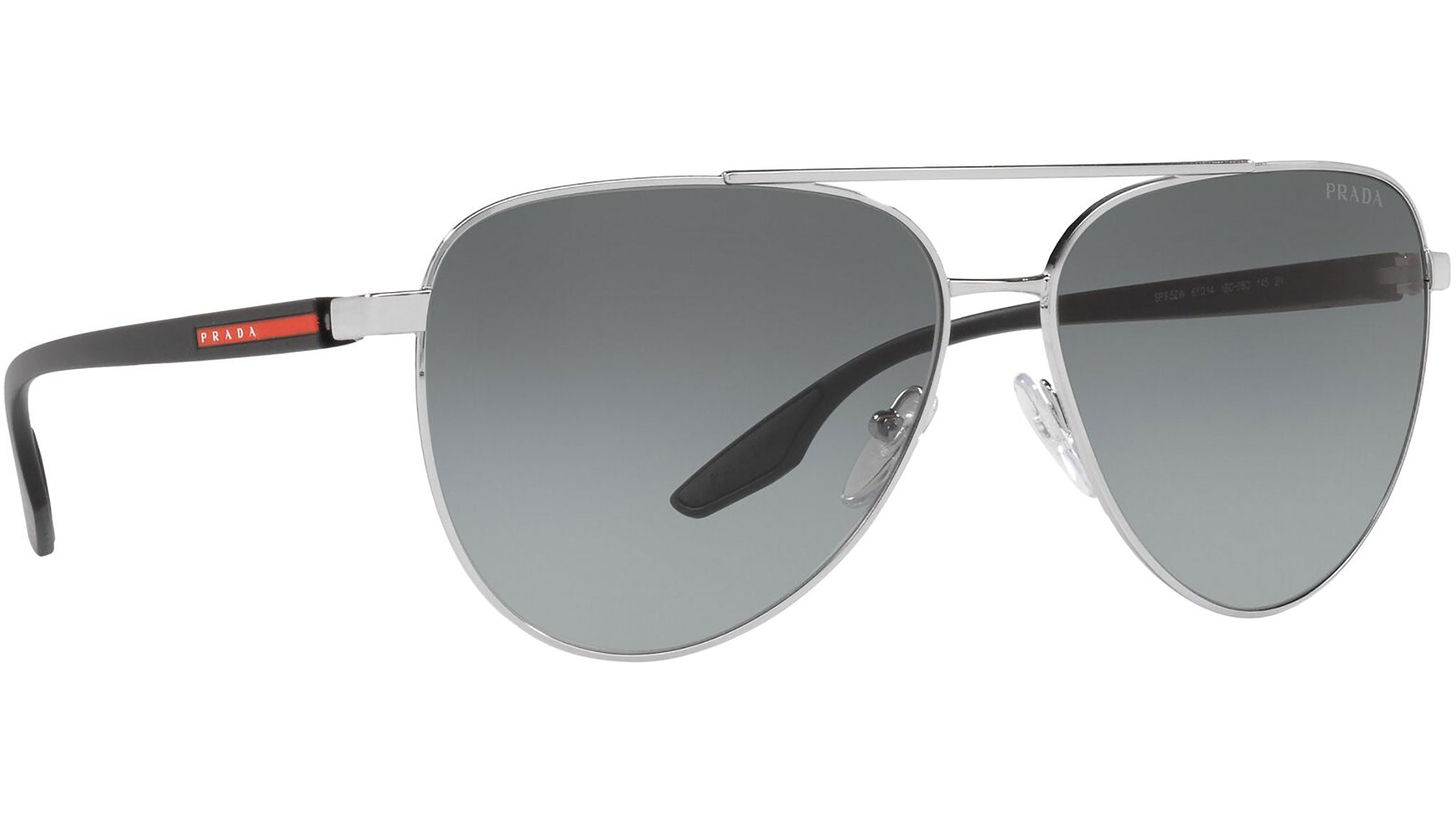 Occhiali da sole Prada Linea Rossa modello PS 52WS nella variante colore 1BC08O argento con lenti color grigio sfumato. Una perfetta fusione dei concetti di sportswear ed eleganza contemporanea: la linea di occhiali da sole Prada Linea Rossa declina in un moderno stile casual tutta la qualità e la raffinatezza artigianale della maison Prada.