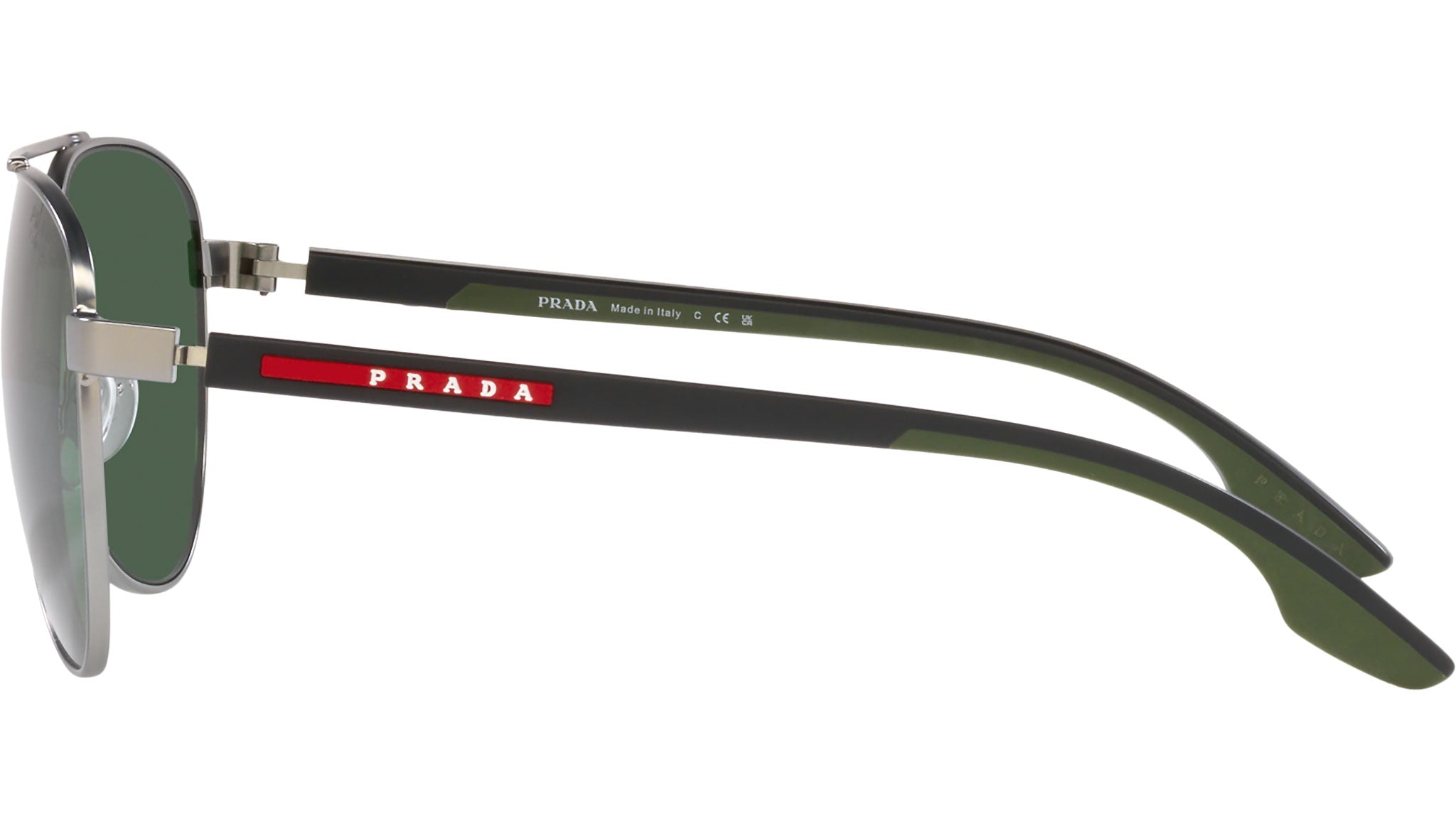 Occhiali da sole Prada Linea Rossa modello PS52YS nella variante colore 7CQ06U canna di fucile opaco con lenti color verde. Una perfetta fusione dei concetti di sportswear ed eleganza contemporanea: la linea di occhiali da sole Prada Linea Rossa declina in un moderno stile casual tutta la qualità e la raffinatezza artigianale della maison Prada.