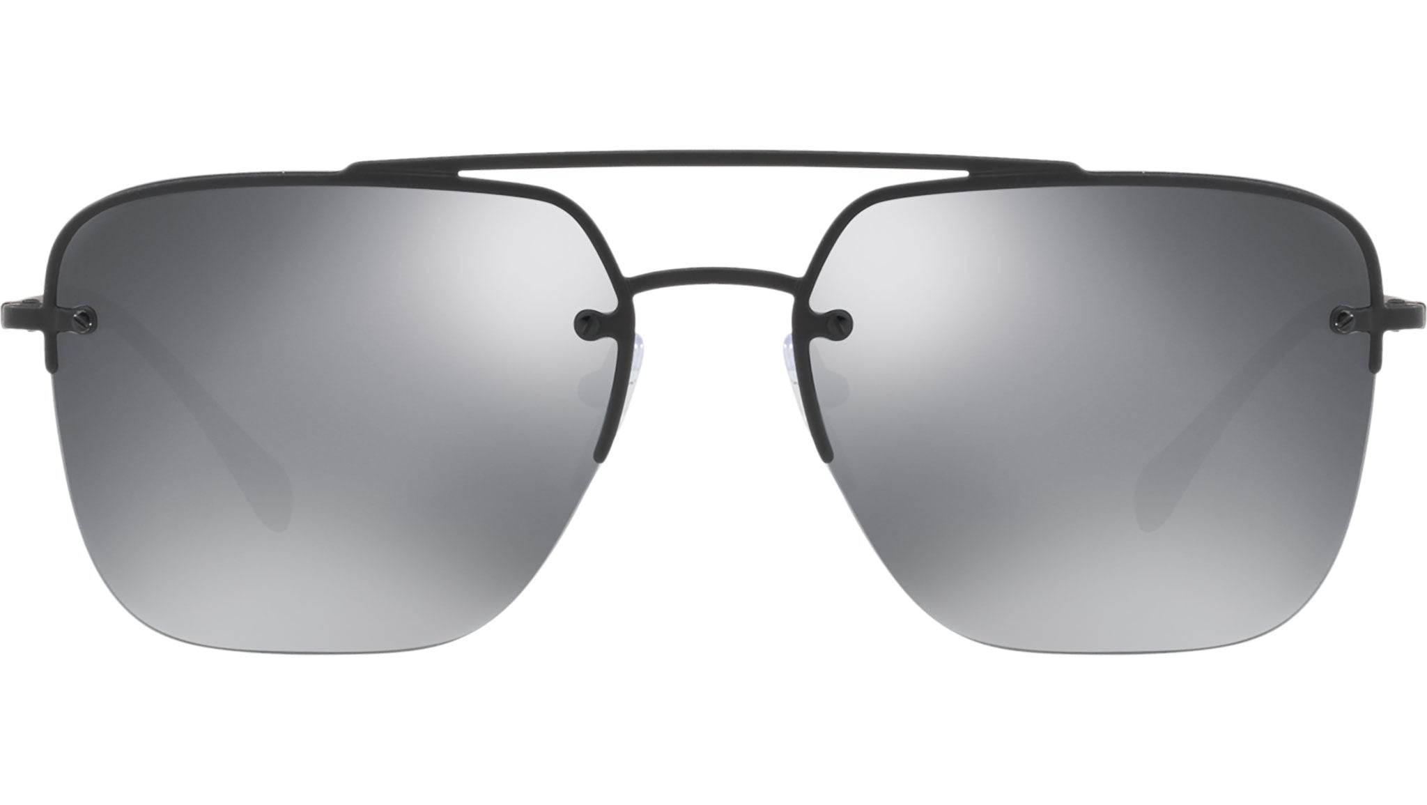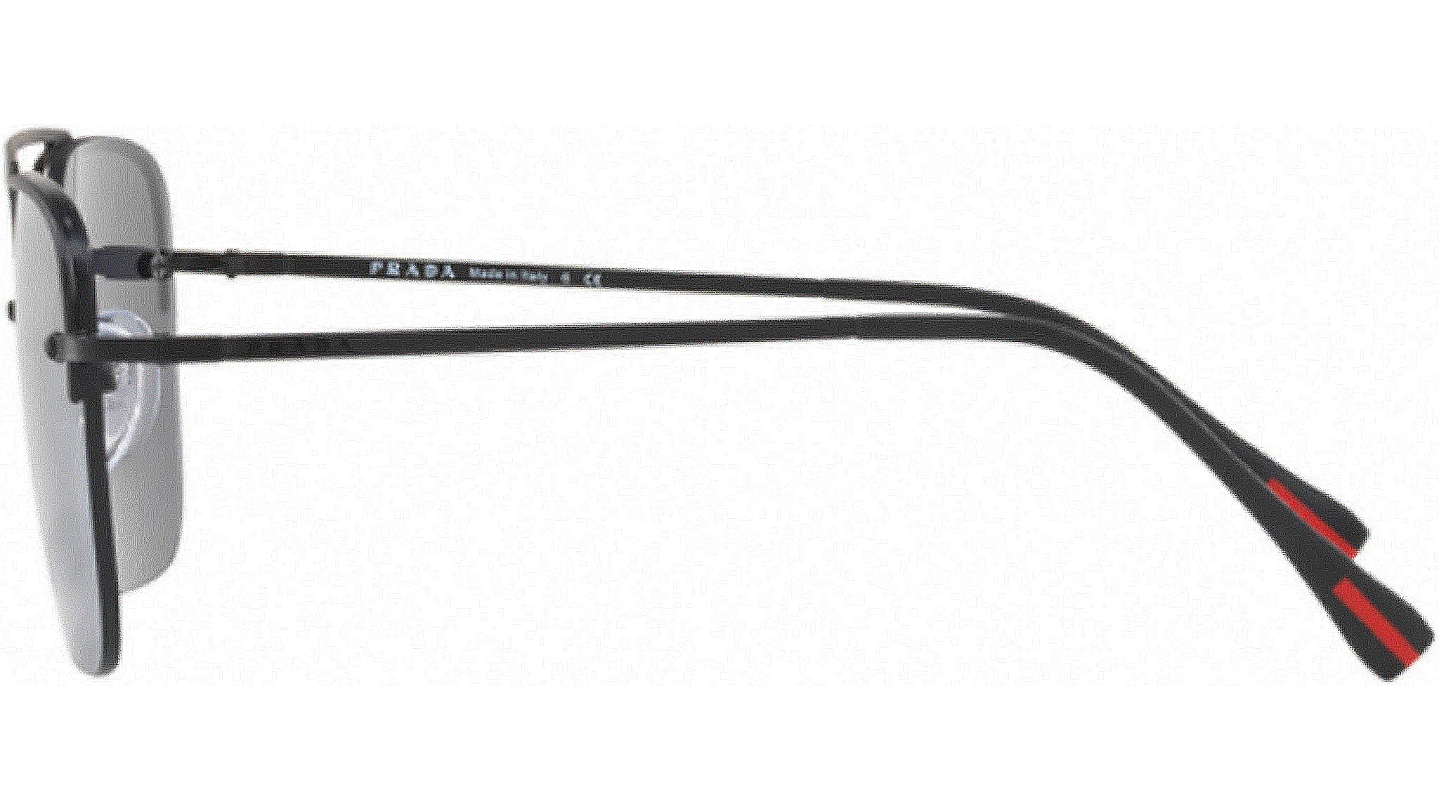 Occhiali da sole Prada Linea Rossa modello PS54SS nella variante colore DG05L0 nero gommato con lenti color grigio a specchio nero. Una perfetta fusione dei concetti di sportswear ed eleganza contemporanea: la linea di occhiali da sole Prada Linea Rossa declina in un moderno stile casual tutta la qualità e la raffinatezza artigianale della maison Prada.