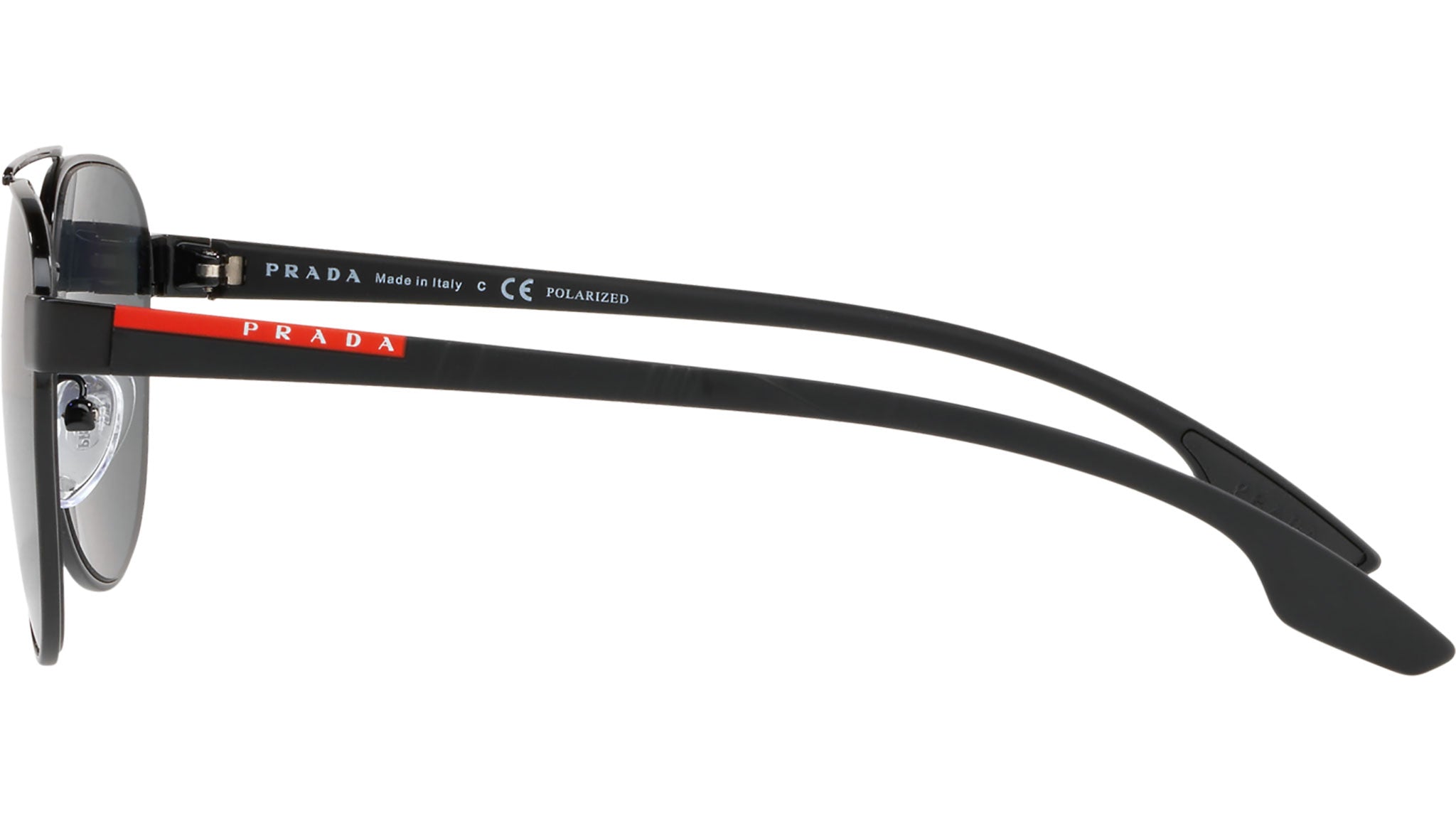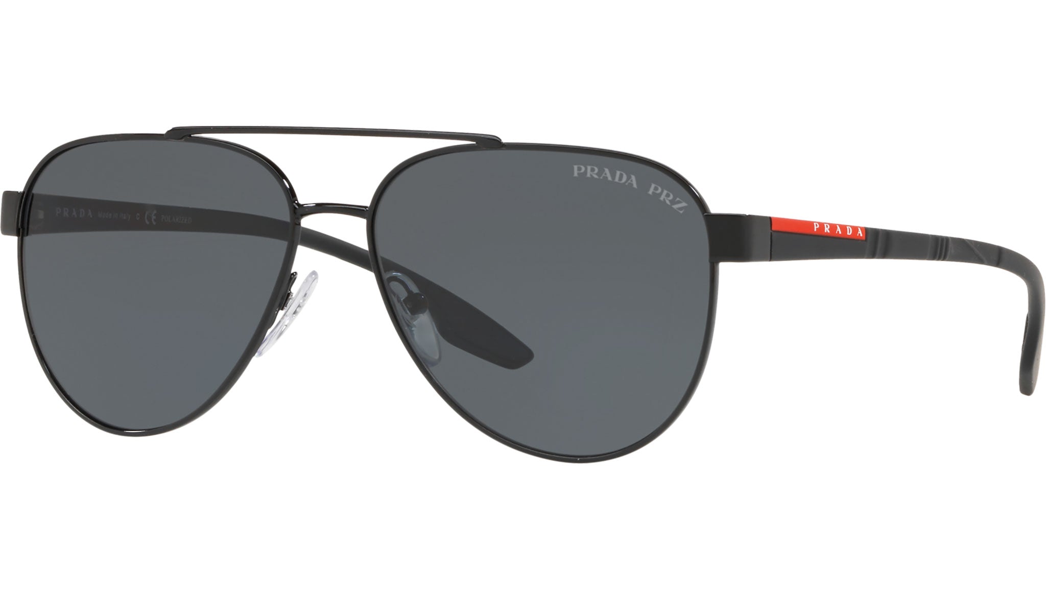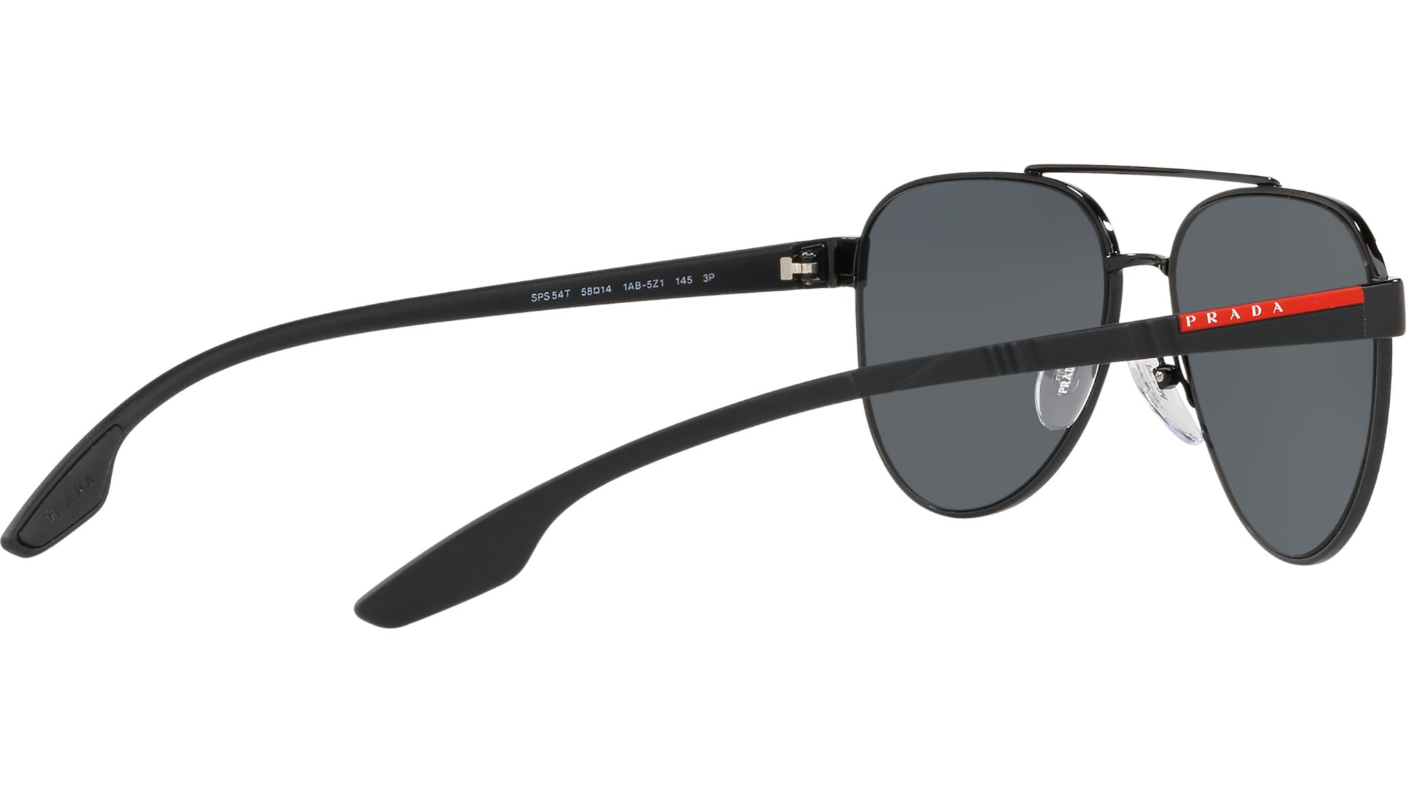 Prada Linea Rossa sunglasses model PS 54TS, black frame variant, color code 1AB5Z1 with polar grey lens. Prada Linea Rossa Sun Collection conveys an everyday casual style with all the quality and craftsmanship of the Prada brand.