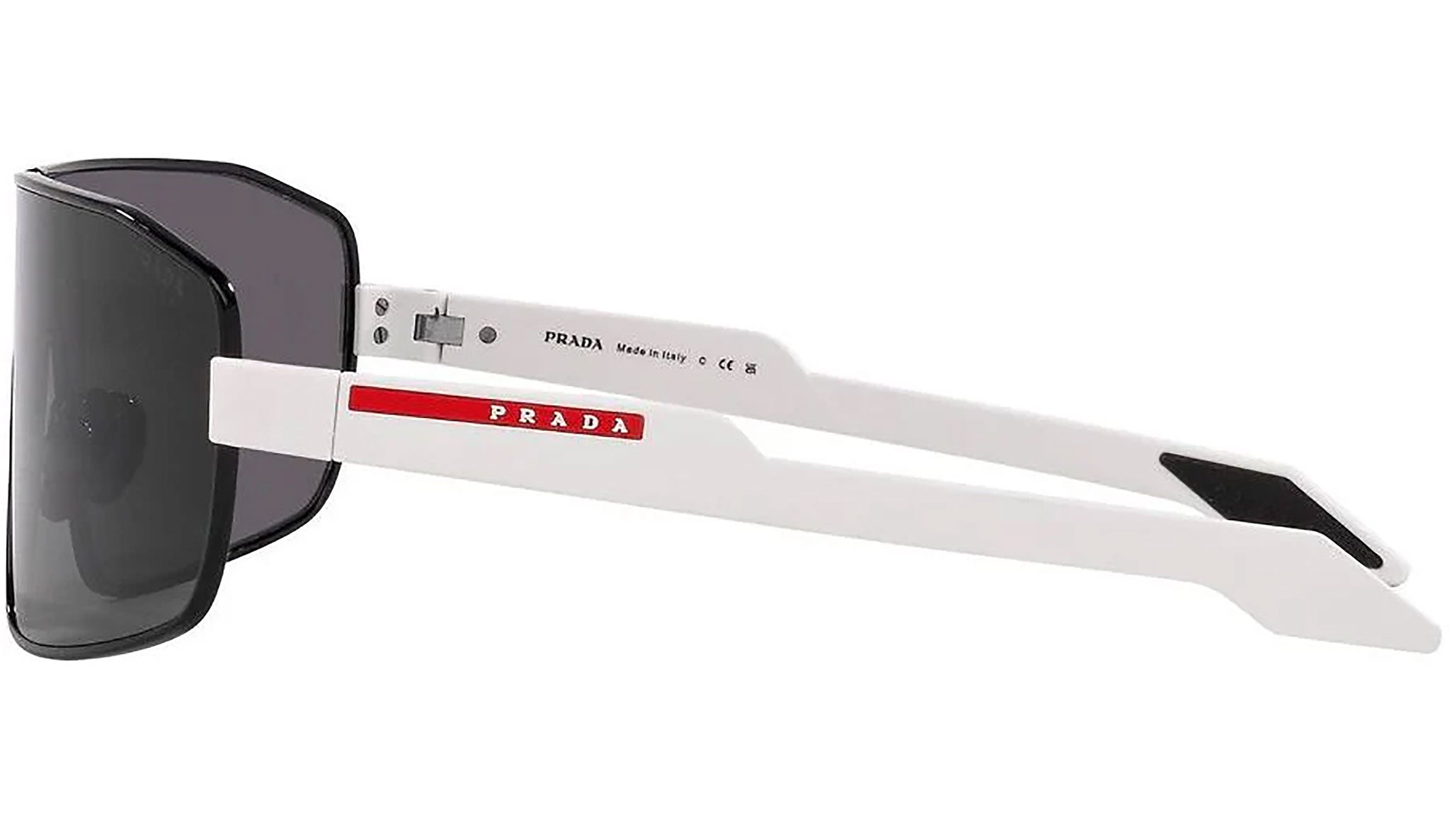 Occhiali da sole Prada Linea Rossa modello PS 54YS codice colore 1AB01V con montatura rettangolare full rim in metallo color nero e lenti in policarbonato color grigio. Rivenditore autorizzato Prada. Ogni prodotto Prada Linea Rossa viene consegnato con astuccio originale e accessori.