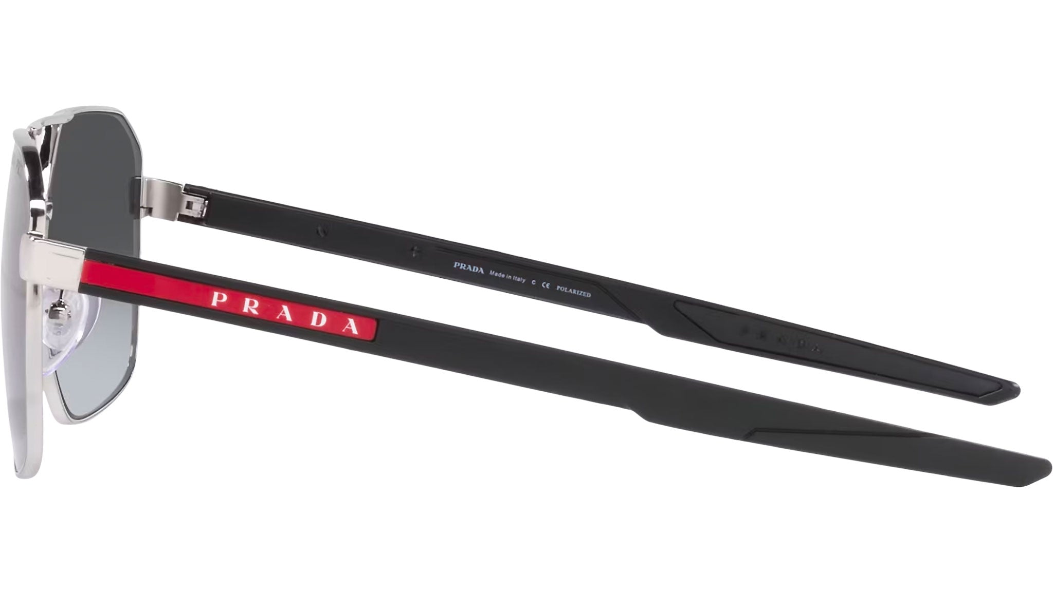 Occhiali da sole Prada Linea Rossa modello PS 55WS nella variante colore 1BC06G argento con lenti color grigio sfumato. Una perfetta fusione dei concetti di sportswear ed eleganza contemporanea: la linea di occhiali da sole Prada Linea Rossa declina in un moderno stile casual tutta la qualità e la raffinatezza artigianale della maison Prada.