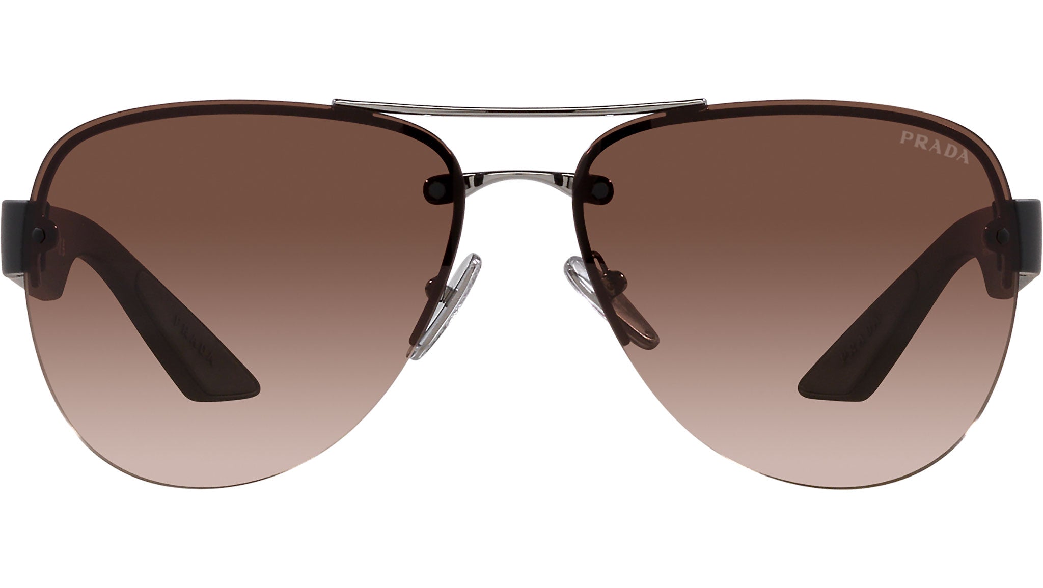 Occhiali da sole Prada Linea Rossa modello PS 55YS codice colore 5AV02P con montatura aviatore semi rim in metallo color canna di fucile e lenti in poliammide color gradiente marrone. Rivenditore autorizzato Prada. Ogni prodotto Prada Linea Rossa viene consegnato con astuccio originale e accessori.