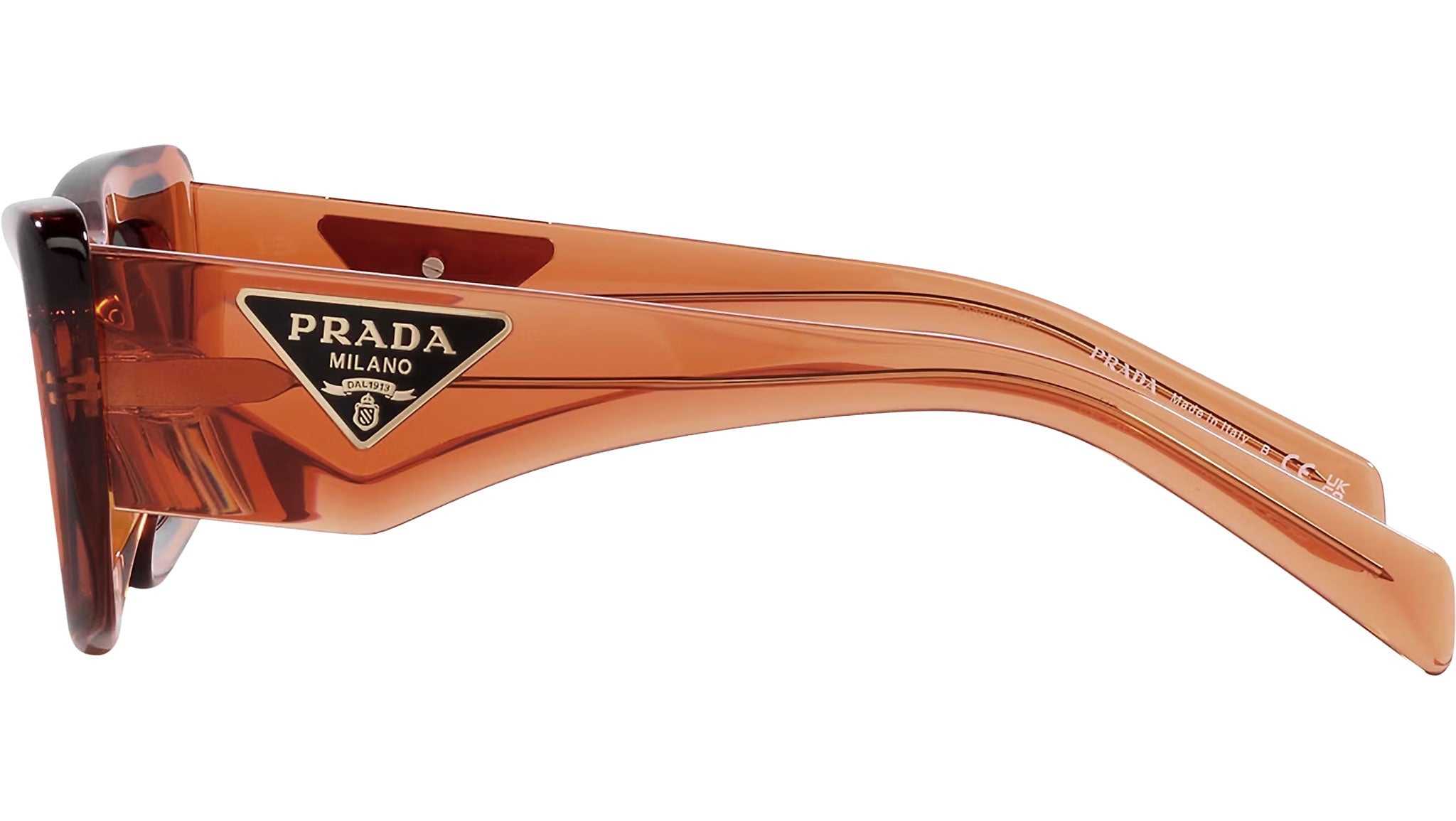 Occhiali da sole Prada modello PR13ZS variante colore 10N5S0 cristallo arancione, con lenti color grigio scuro. Prada è uno dei marchi più rappresentativi della moda italiana, un esempio di stile, dove cultura e tradizione si fondono in uno dei brand più innovativi, prestigiosi e riconosciuti al mondo. Le collezioni di occhiali da sole Prada rispecchiano una grande attenzione ai dettagli e alle nuove tendenze, per uno stile inconfondibile, senza eguali, di raffinata eleganza e qualità assoluta.