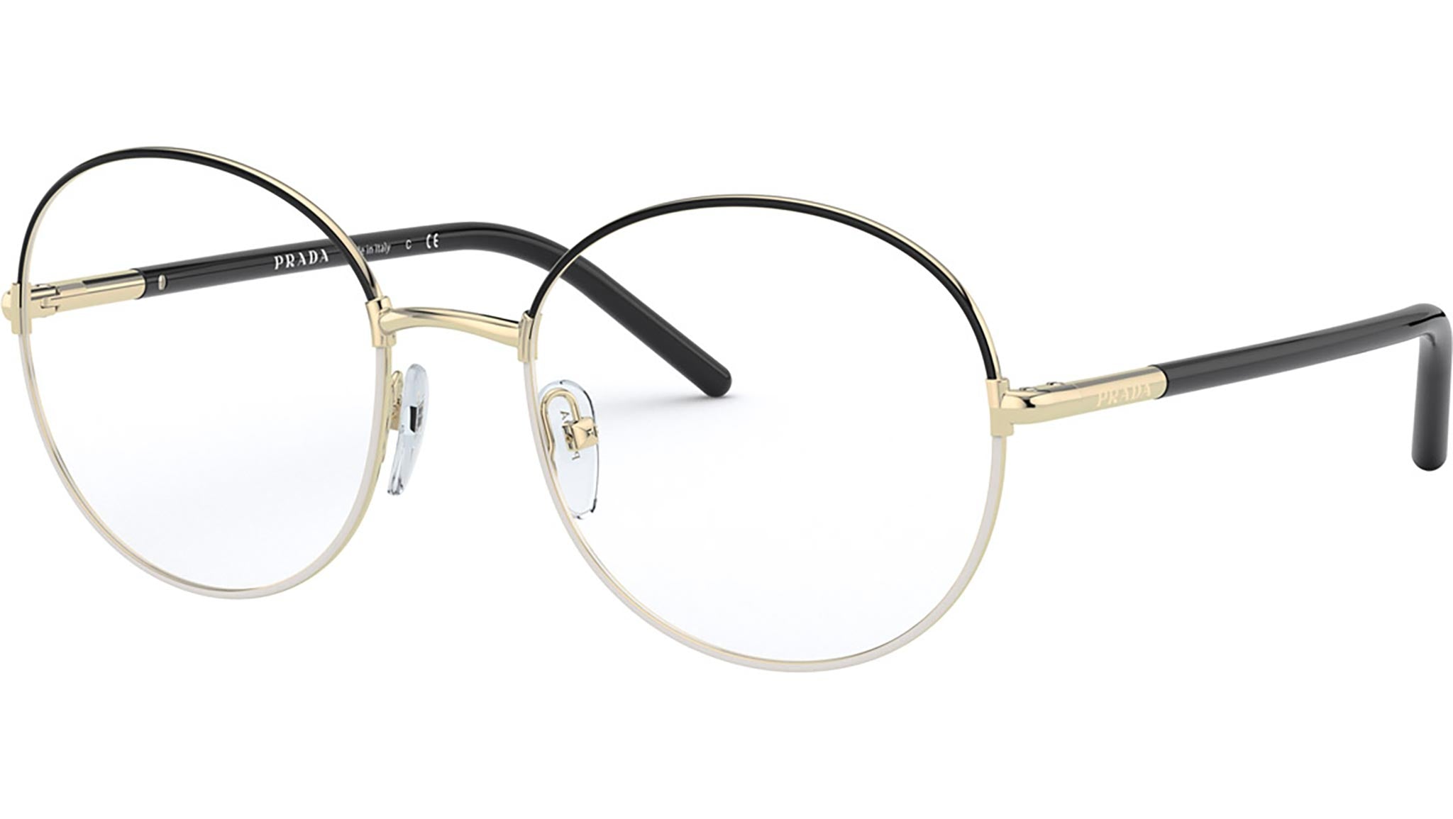 Prada Eyewear Collection model PR 55WV, black and white frame variant, color code 07I1O1. Prada represents the best of Italian culture and tradition. It is one of the most innovative, prestigious and widely recognized brands in the fashion and luxury goods industries, with a keen attention to details and new trends.
