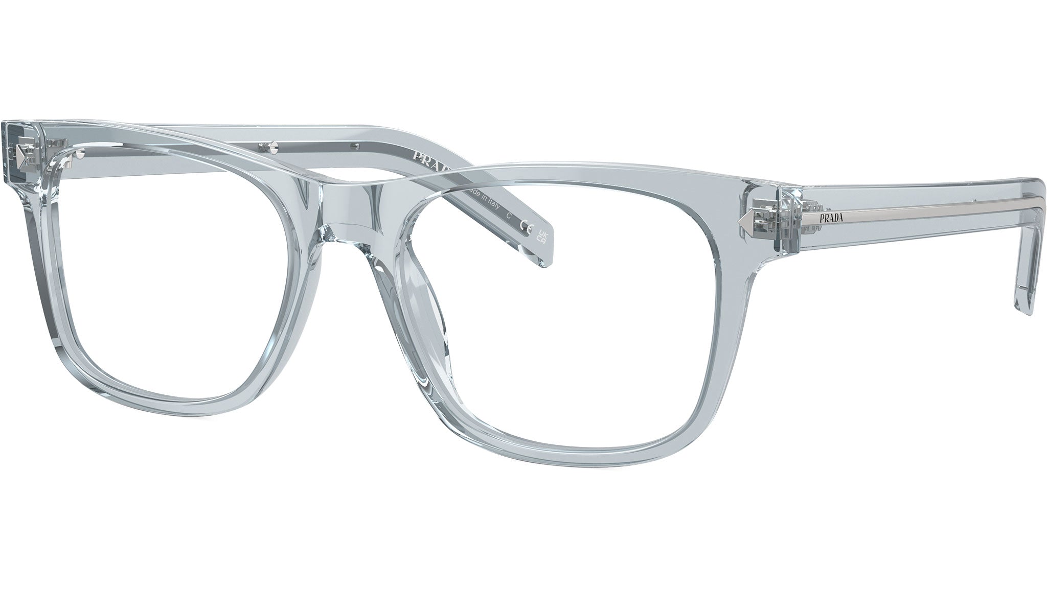 Occhiali da vista Prada uomo modello A13V con montatura azzurro trasparente full rim in acetato e lenti demo base 4. Fit a ponte alto. Linea: Signature. Brand code: PRA13V. Codice colore: 19T1O1. Rivenditore autorizzato Prada. Ogni prodotto Prada viene consegnato con astuccio originale e accessori ed è coperto da garanzia del produttore di 12 mesi.