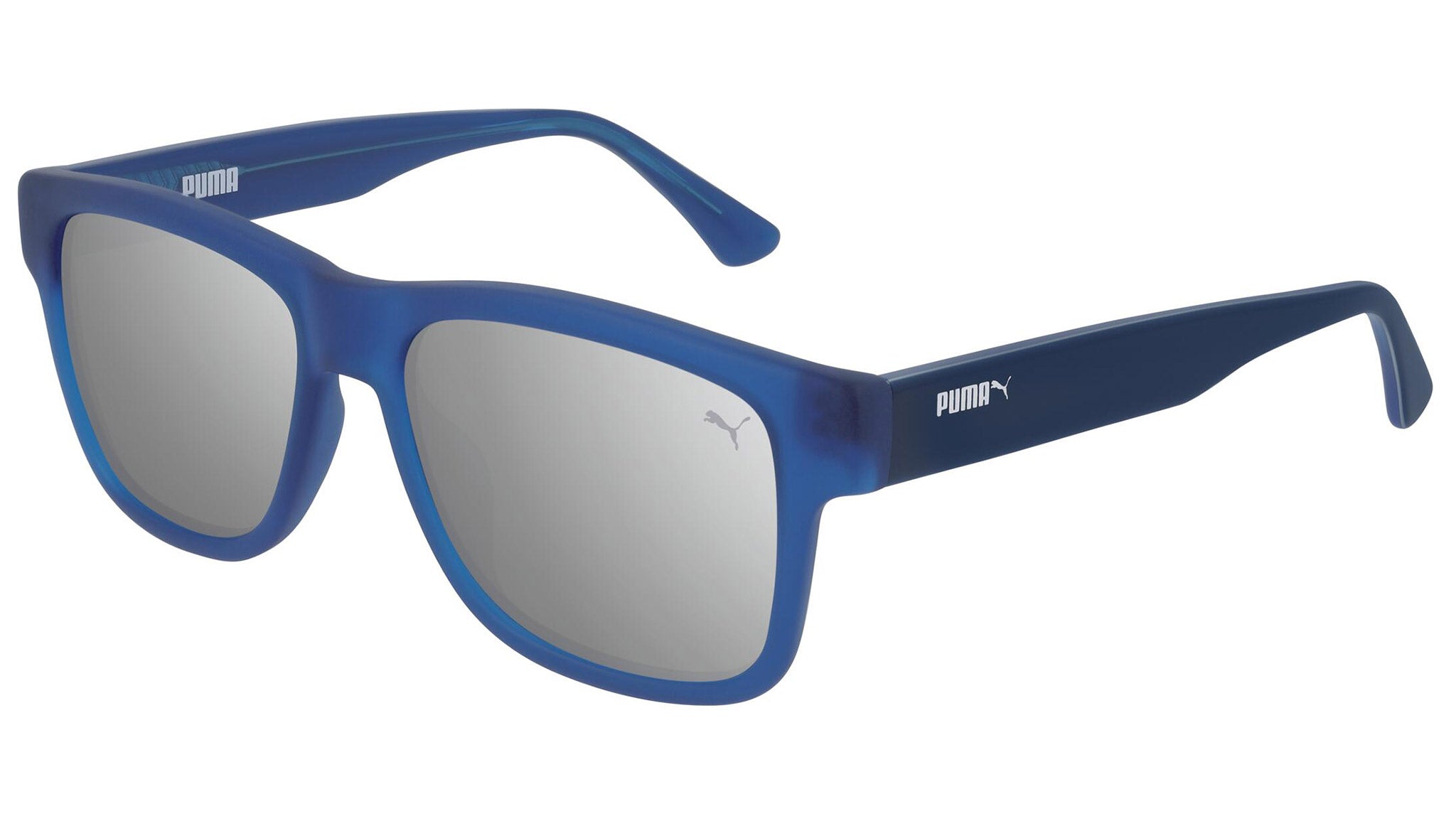 Puma for Kids model PJ0001S 011 matte transparent varnished blue sunglasses, with silver lenses. These kids are on the move. They roam the streets in search for recognition, emotions and daily kicks: celebrating with friends at the Luna Park, a thrilling jump, a trick on a skateboard, or simply seeing something new.