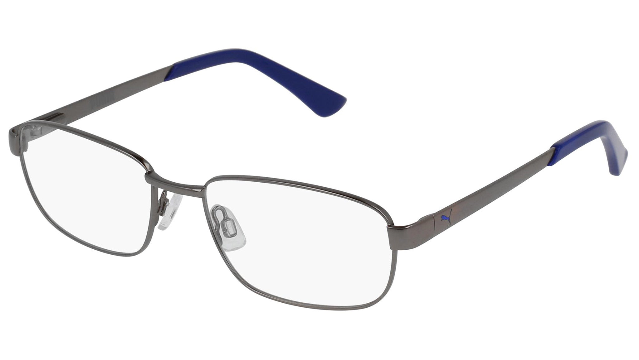 Puma for Kids model PJ0011O 003 semimatte ruthenium optical frame. These kids are on the move. They roam the streets in search for recognition, emotions and daily kicks: celebrating with friends at the Luna Park, a thrilling jump, a trick on a skateboard, or simply seeing something new.