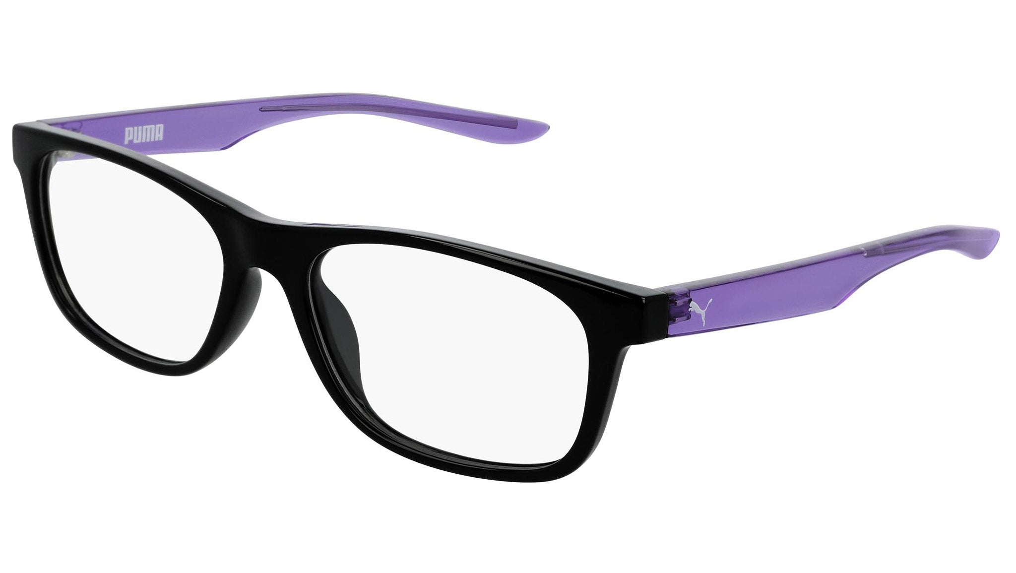 Puma for Kids model PJ0030O 004 shiny black optical frame. These kids are on the move. They roam the streets in search for recognition, emotions and daily kicks: celebrating with friends at the Luna Park, a thrilling jump, a trick on a skateboard, or simply seeing something new.